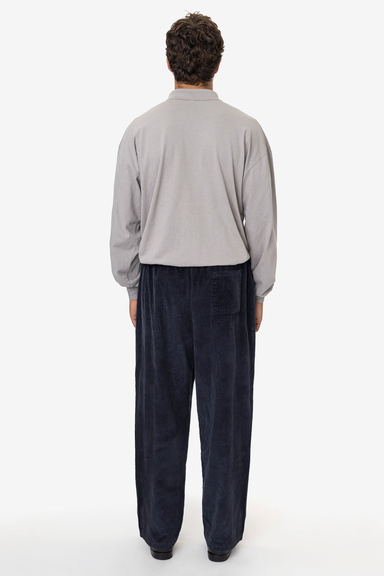 These 100% Cotton Corduroy pants have an extra wide, baggy fit. The elastic waistband provides comfort and versatility with a tasteful drape. Features 2 side pockets and 1 back pocket. Heavyweight and ideal for cooler weather. These pants have also been garment washed and are shrink-free. Made in Los Angeles, Calif. Ou