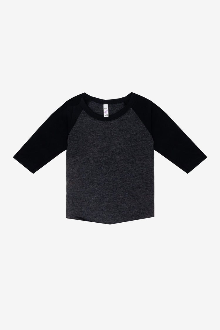 This classic unisex children's raglan is made from one of our bestselling, original textiles. Our 50/50 poly cotton is lightweight and versatile. This style features 3/4 length sleeves and a raw-finished hem. SUSTAINABILITY ADVISORY: This product is made of recaptured textiles scraps left over from the manufacturing of