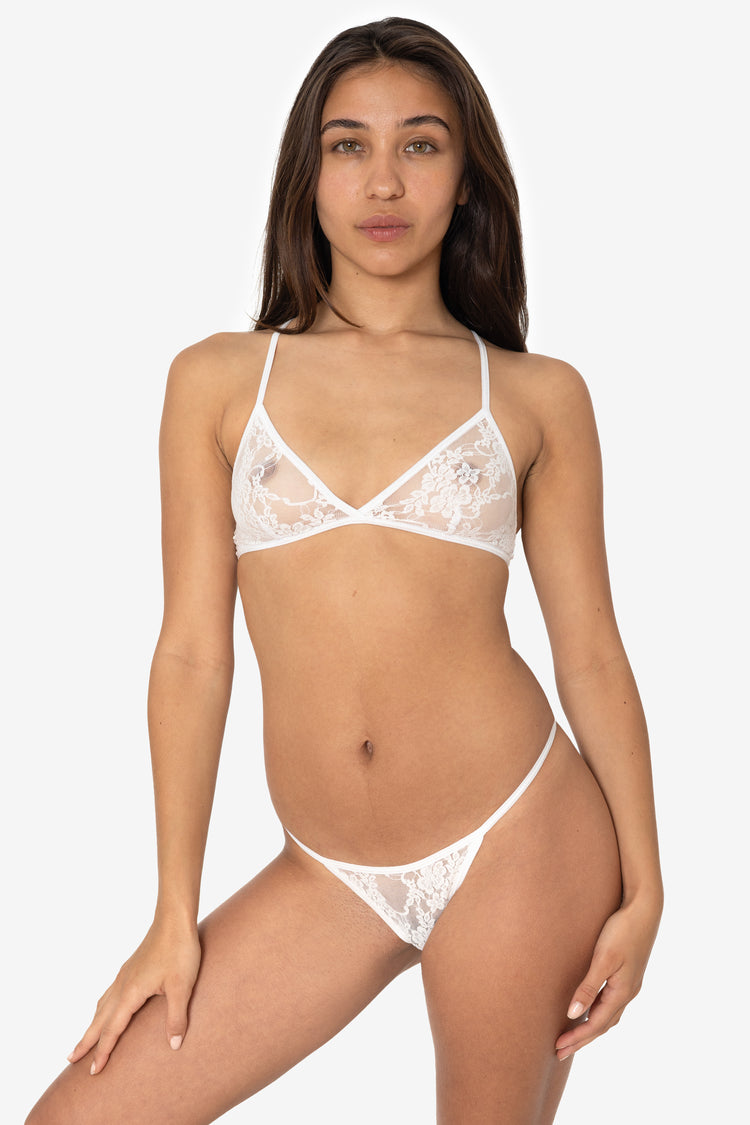 Our Floral Lace Brazillian Tanga Panty is made of stretchy and durable nylon-spandex that is also available in a matching bralettes. This brief has cheeky coverage with high cut leg openings and a mid-rise. These panties feature foldover elastic binding for a secure fit and a 100% cotton gusset lining for hygienic heal