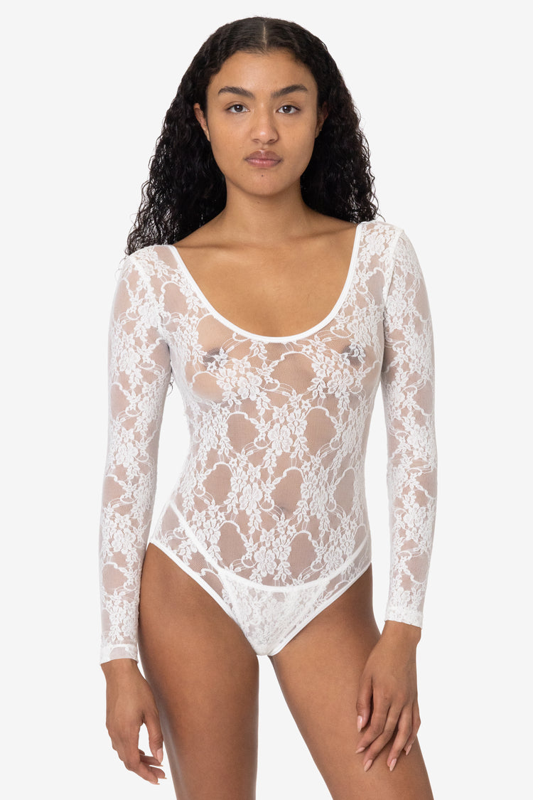 FNS328 – Floral Lace Long Sleeve Scoopneck Bodysuit
