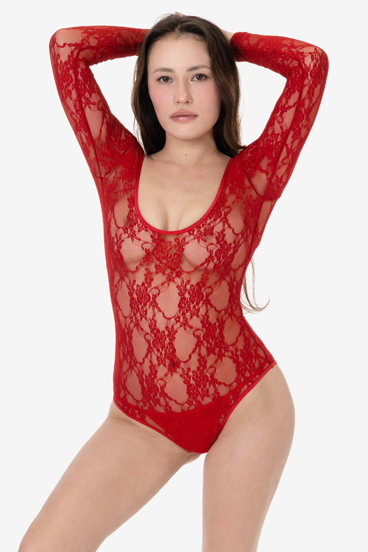 FNS328 – Floral Lace Long Sleeve Scoopneck Bodysuit