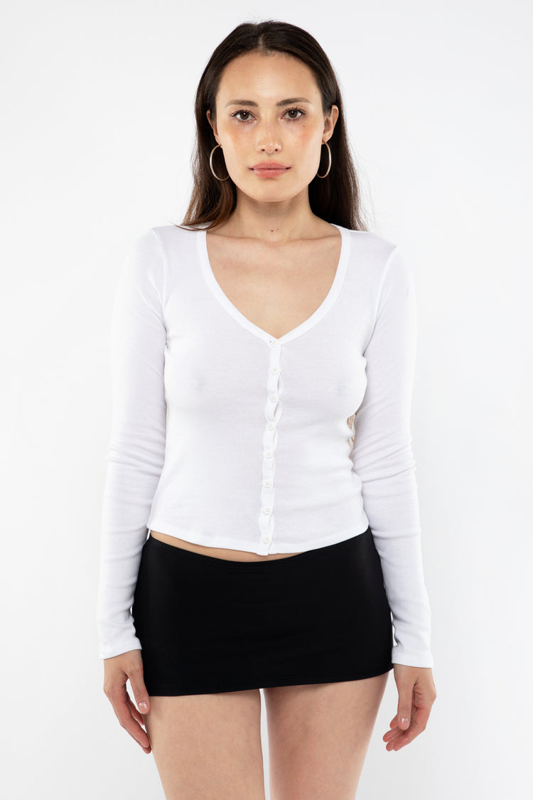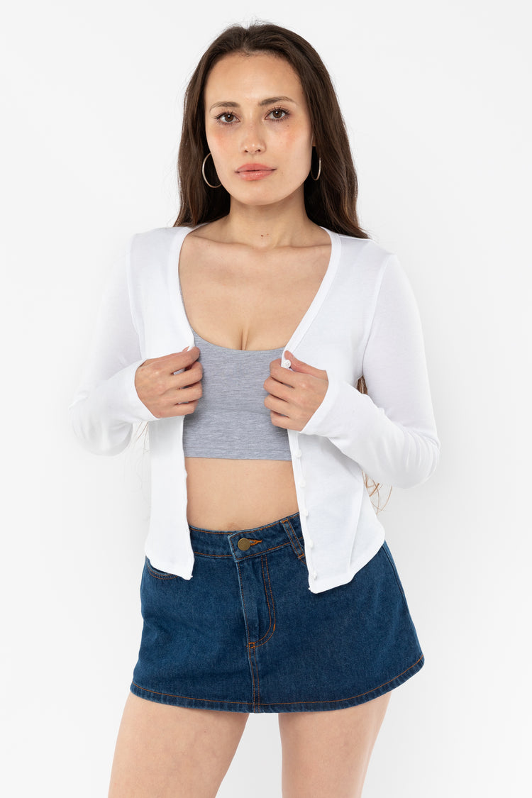 We dug into the archives to bring back a baby rib cardigan from our Classic Girl Collection of the late 90s / early 2000s. Wear it as a summer cardigan or as a lightweight layer for fall. This top can also be worn partially or fully unbuttoned. Our baby rib is made of soft 30 singles yarn and stretches up to 2 times it