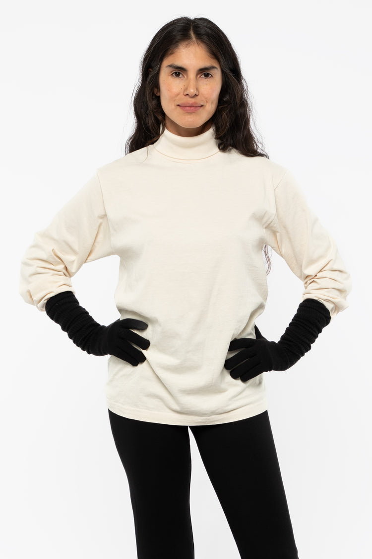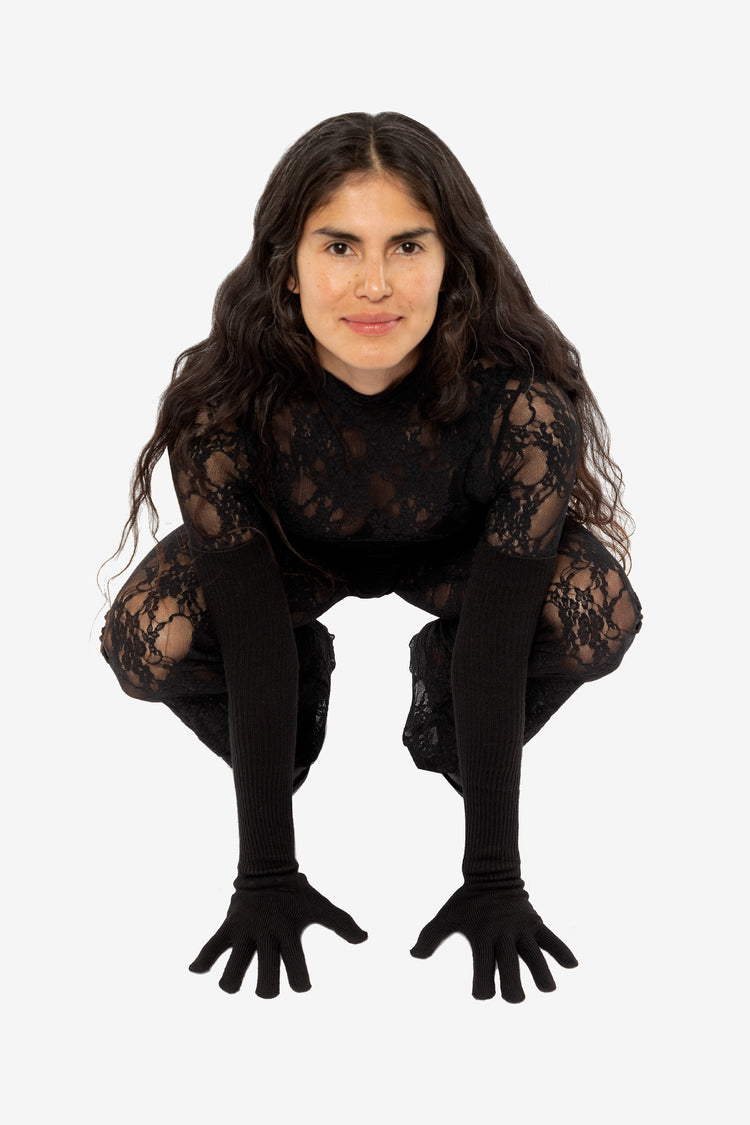 The Long Acrylic Gloves are a Unisex style that provide an extra layer of protection from the cold. They can be worn full length as protective sleeves or slouched or folded down to a desired length. Made in Los Angeles, Calif. Our experienced sewers earn up to $25 an hour and no less than $17.87; additionally workers h