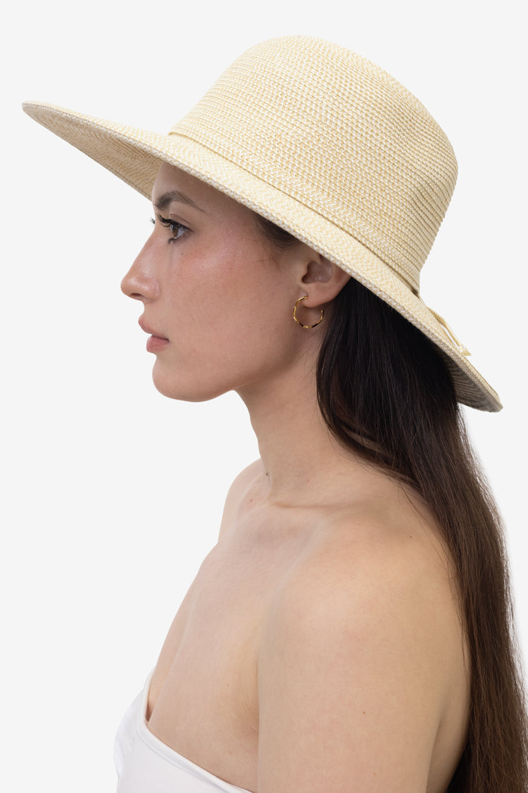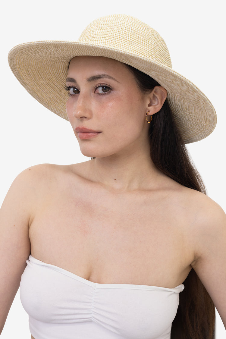 An everyday hat with just enough flop to feel a little rustic. It's made of naturally lightweight and breathable straw, woven tightly to provide up to 50 UPF. The interior sweatband is lined with soft elastic for comfort and also doubles as a safeguard to retain its shape. *A UPF rating is an industry-standard used to