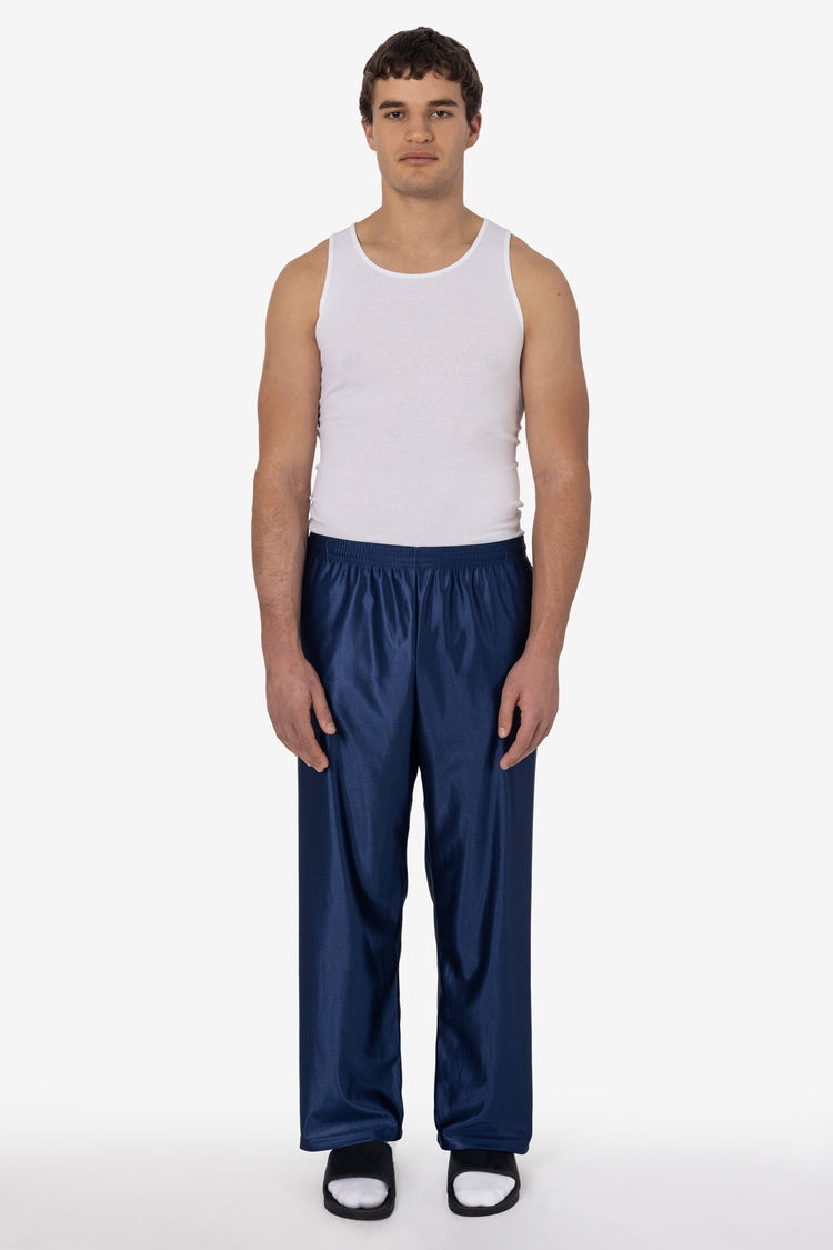 These Heavy Dazzle Training Pants are made of a durable polyester textile with an attractive, glossy sheen. Designed with a breezy, wide-fit and a gusseted inseam for flexibility and comfort. Features 2 side pockets, back pocket and an adjustable drawcord waist. Made in Los Angeles, Calif. Our experienced sewers earn u