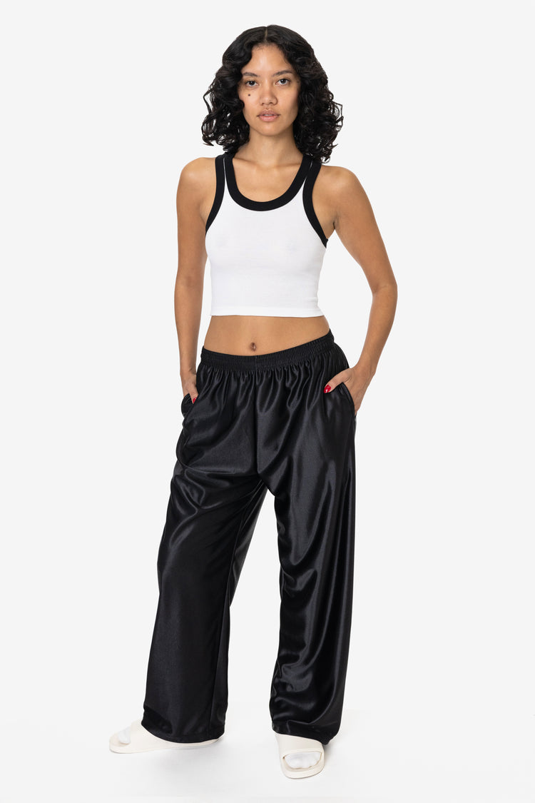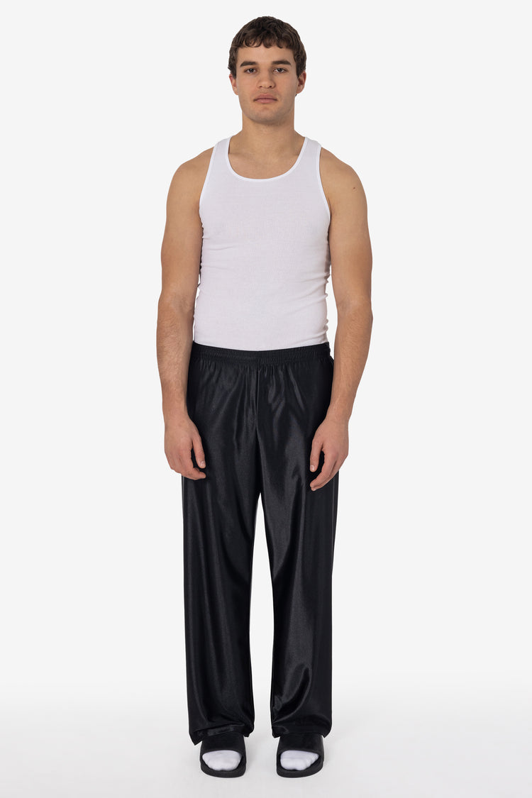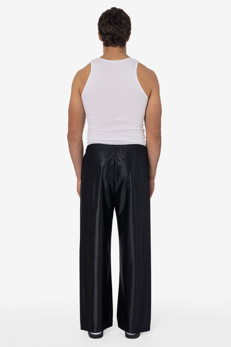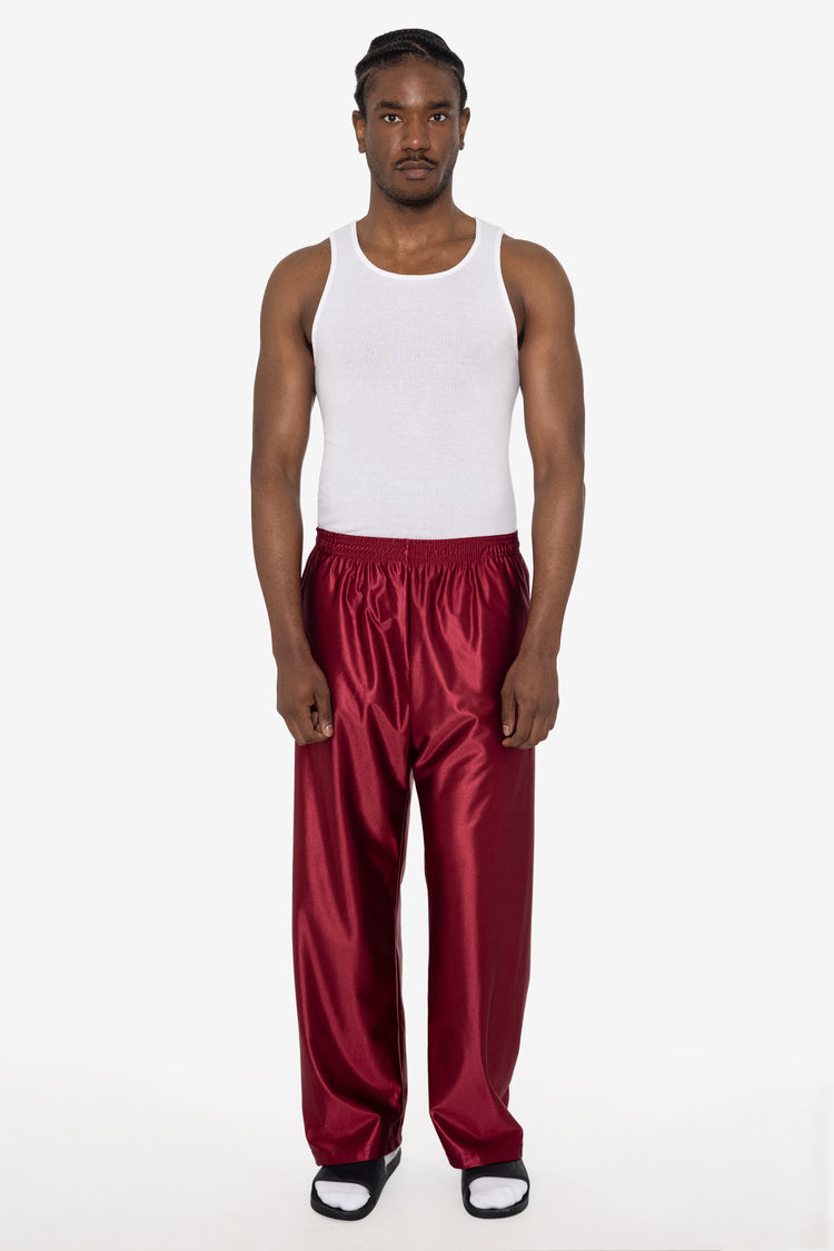These Heavy Dazzle Training Pants are made of a durable polyester textile with an attractive, glossy sheen. Designed with a breezy, wide-fit and a gusseted inseam for flexibility and comfort. Features 2 side pockets, back pocket and an adjustable drawcord waist. Made in Los Angeles, Calif. Our experienced sewers earn u