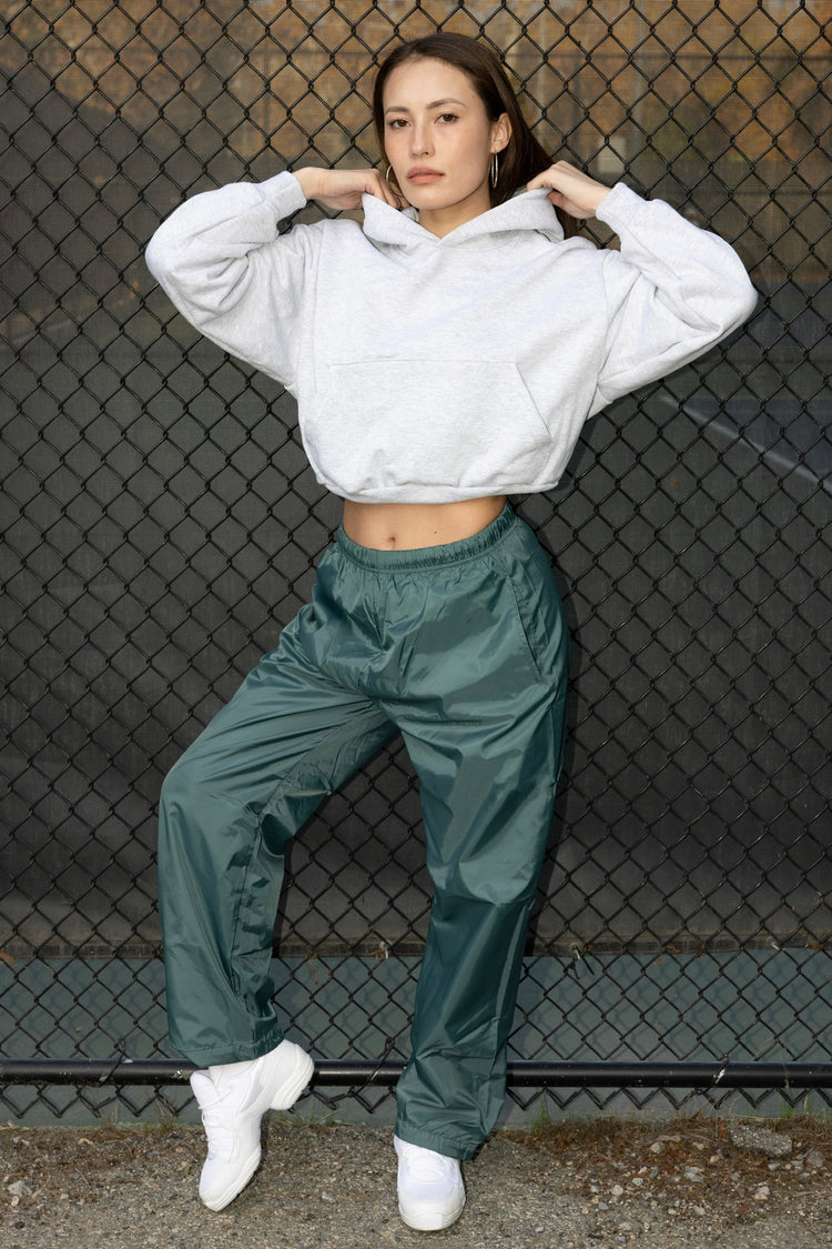 A boxy, cropped version of our Unisex Heavy Pullover Hooded Sweatshirt. Unlike most cropped zip-ups for women, this version features pockets large and deep enough to keep your hands warm at a comfortable height and hold your cell phone without falling out. Pair with our matching HF-05 Heavy Fleece Sweatpants or RGB300