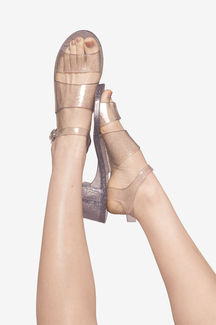 The essential everyday jelly heel made in Los Angeles, Calif. This style comes in vibrant colors to add to your outfit and are also recyclable. Features adjustable ankle strap and buckle closure and 2 straps for a secure fit. Please Note: Clear and Glittered versions of this style may vary with a Black or Clear buckle