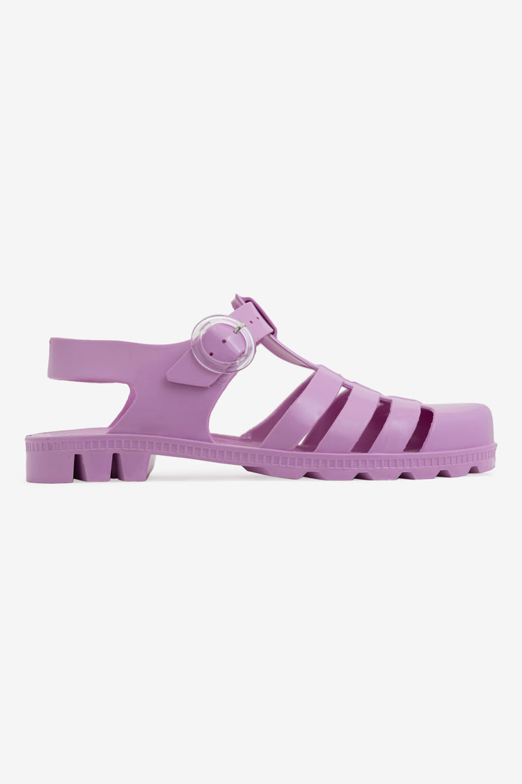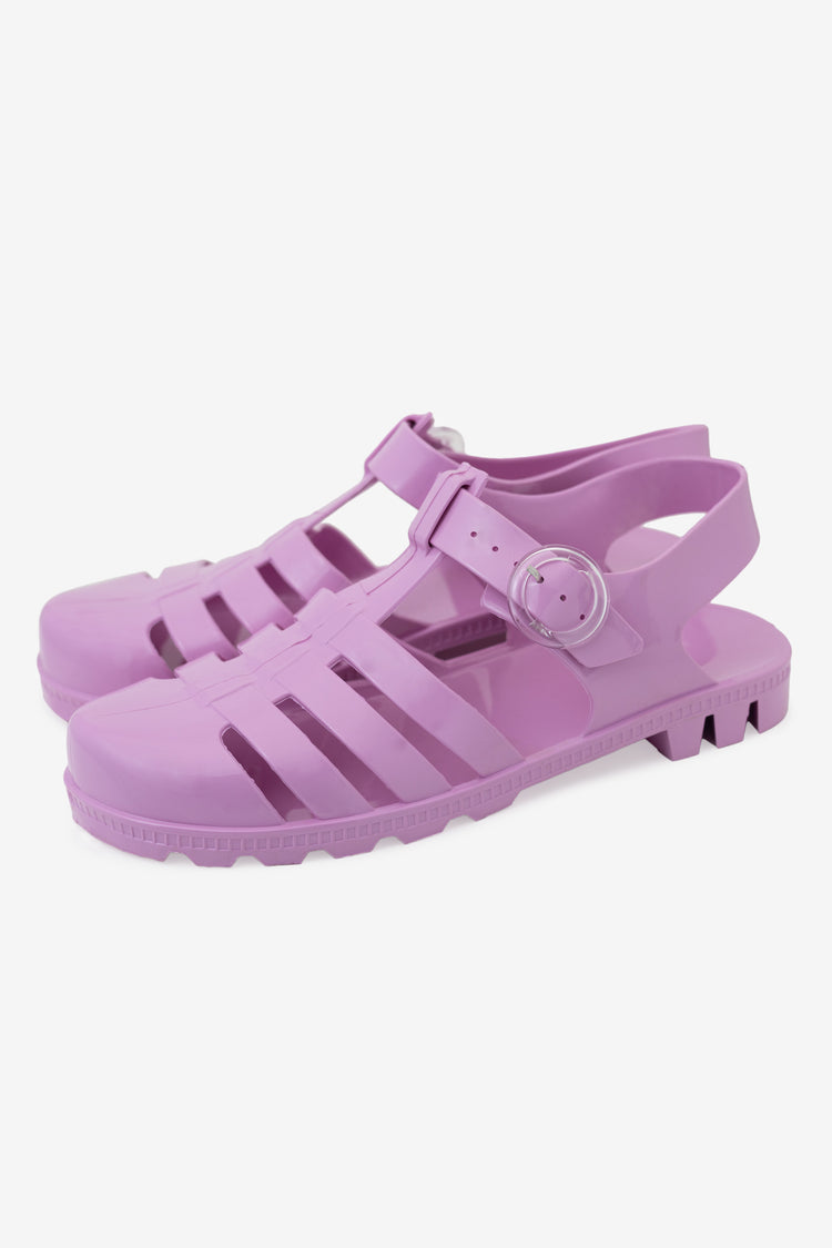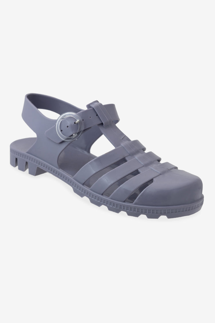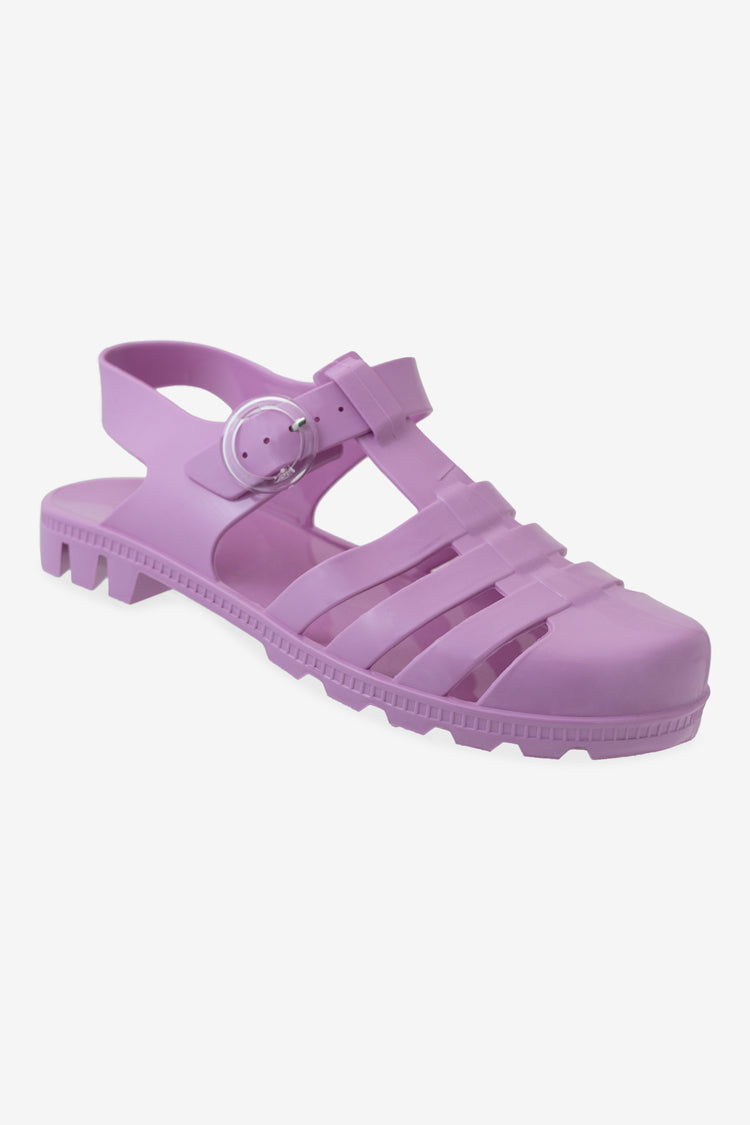The versatile everyday jelly flat made in Los Angeles, Calif. This cult classic jelly shoe is 100% recyclable with sustainability in mind. This style features a basket weave upper with an adjustable ankle strap. This comfortable shoe offers plenty of room and flexibility and can be paired with your favorite socks for a