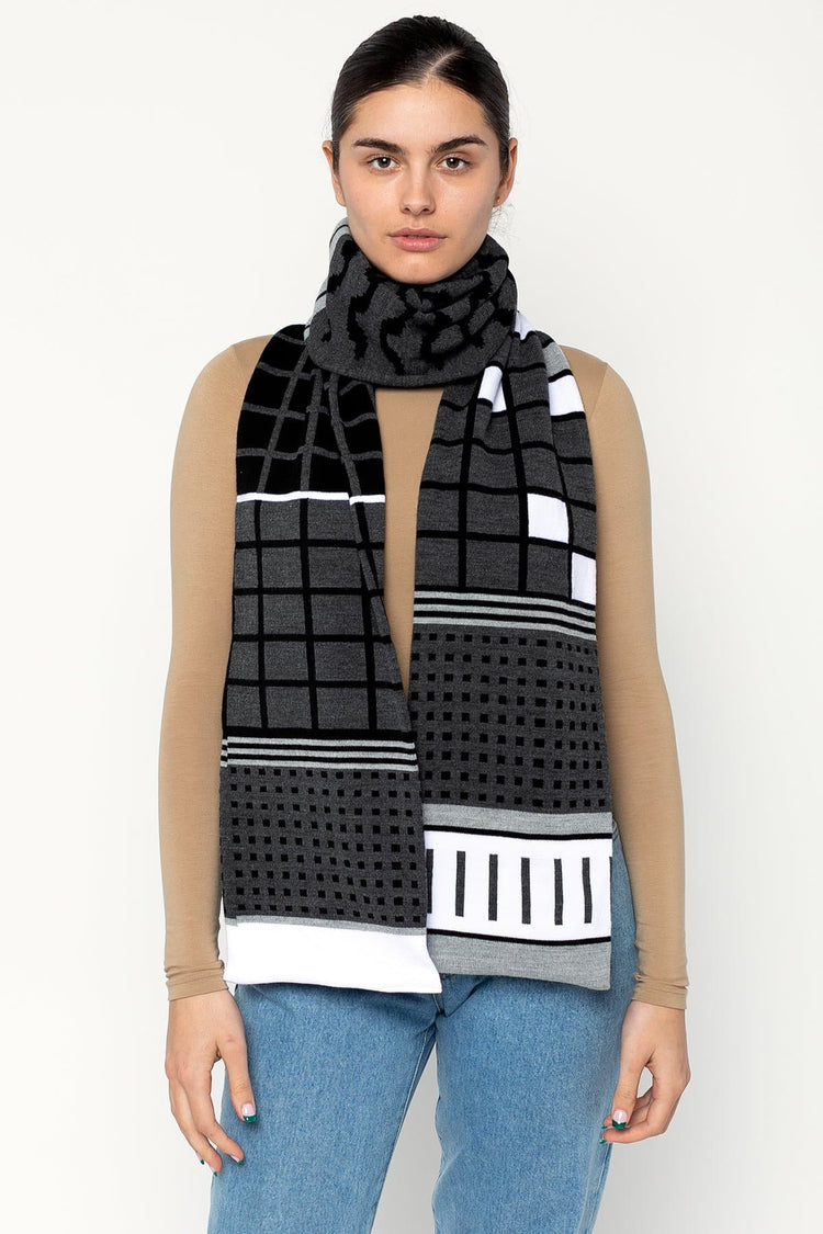 We couldn’t help but be inspired by the outrageous whimsy of Memphis Design originating from 80s Milan. This Unisex jacquard scarf is the perfect happy accessory to compliment your winter layers. Artwork designed by Kchungstudio • 95" Long• Made in Los Angeles, Calif.• Unisex• 100% Acrylic