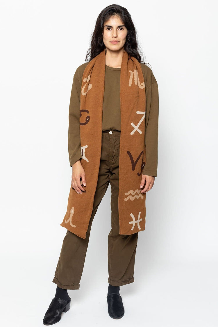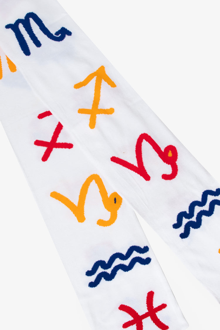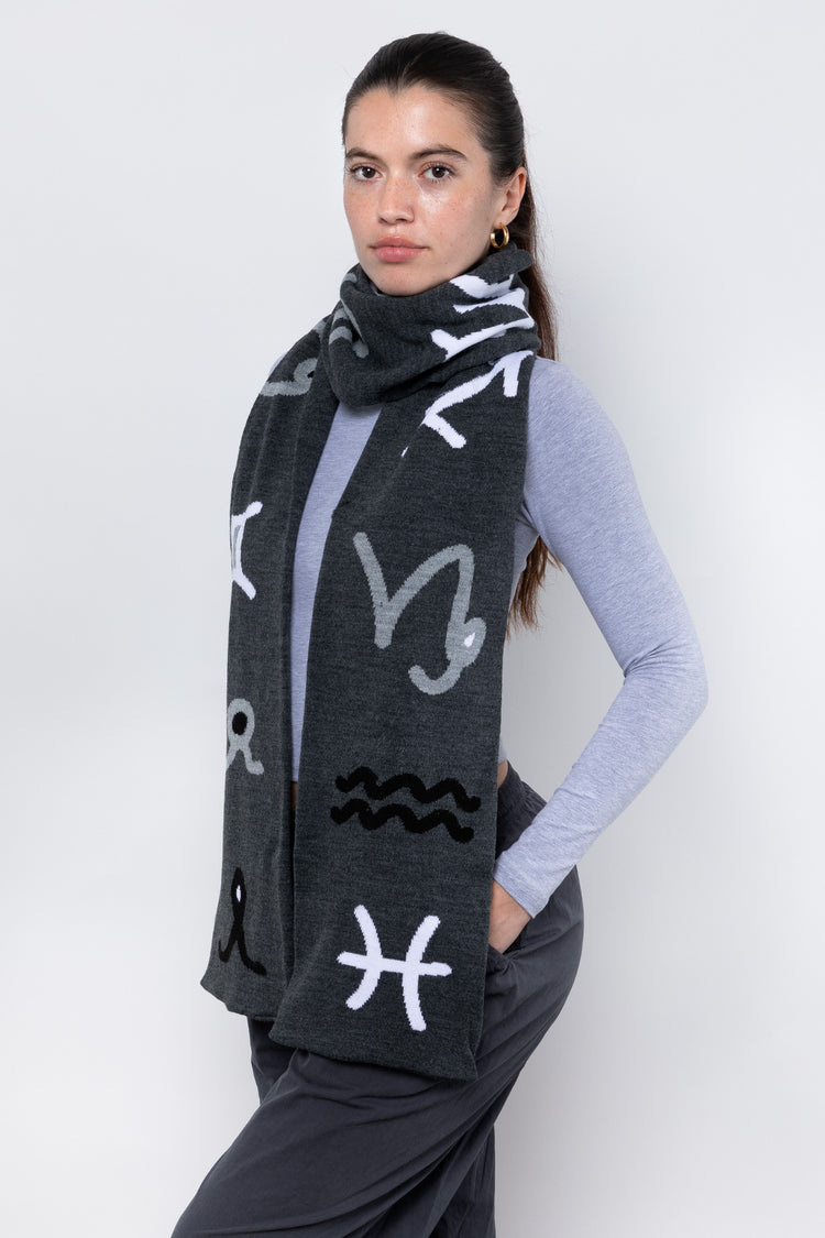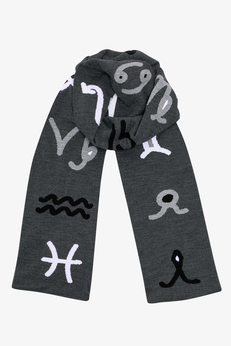 Wear all 12 astrological signs of the Western Zodiac: Aries, Taurus, Gemini, Cancer, Leo, Virgo, Libra, Scorpio, Sagittarius, Capricorn, Aquarius, and Pisces. This scarf is extra long and can be worn by men and women. Artwork designed by Kchungstudio • 95" Long• Made in Los Angeles, Calif.• Unisex• 100% Acrylic