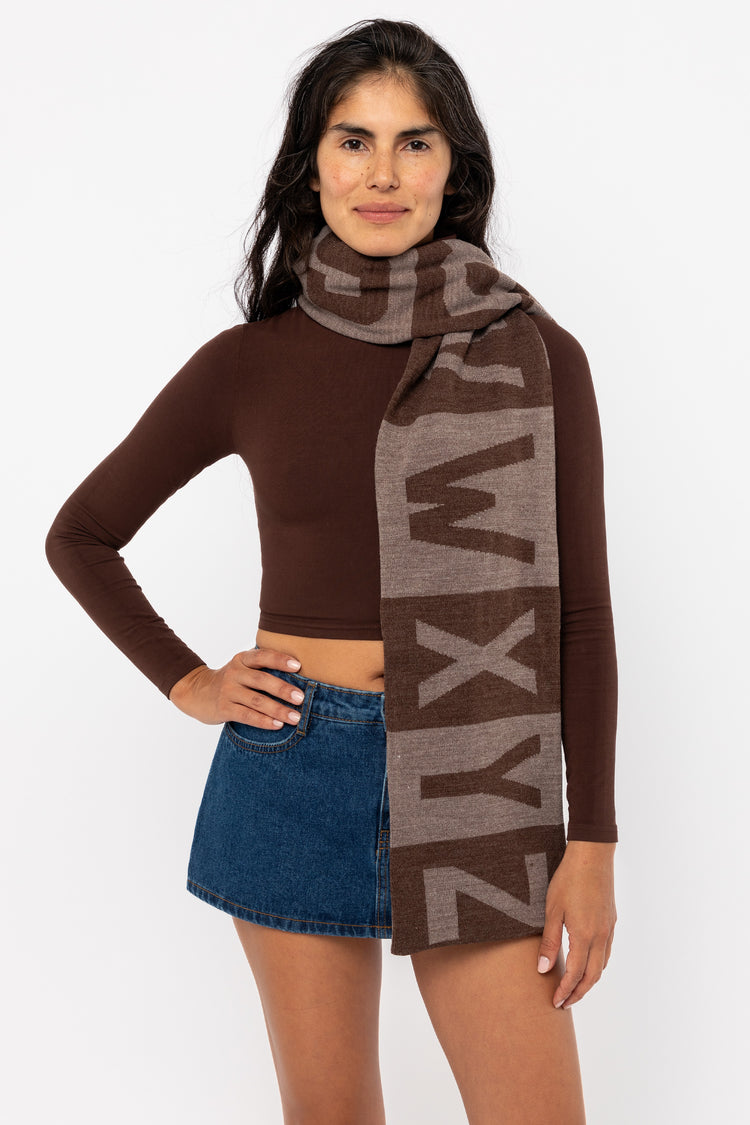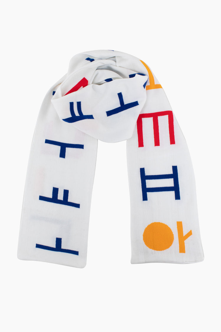 Brighten up your day with our colorful Alphabet scarf. This scarf was inspired by our love of all things typographical.Artwork by KChung Studio. • 95" Long• Made in Los Angeles, Calif.• Reversible• Unisex• 100% Acrylic