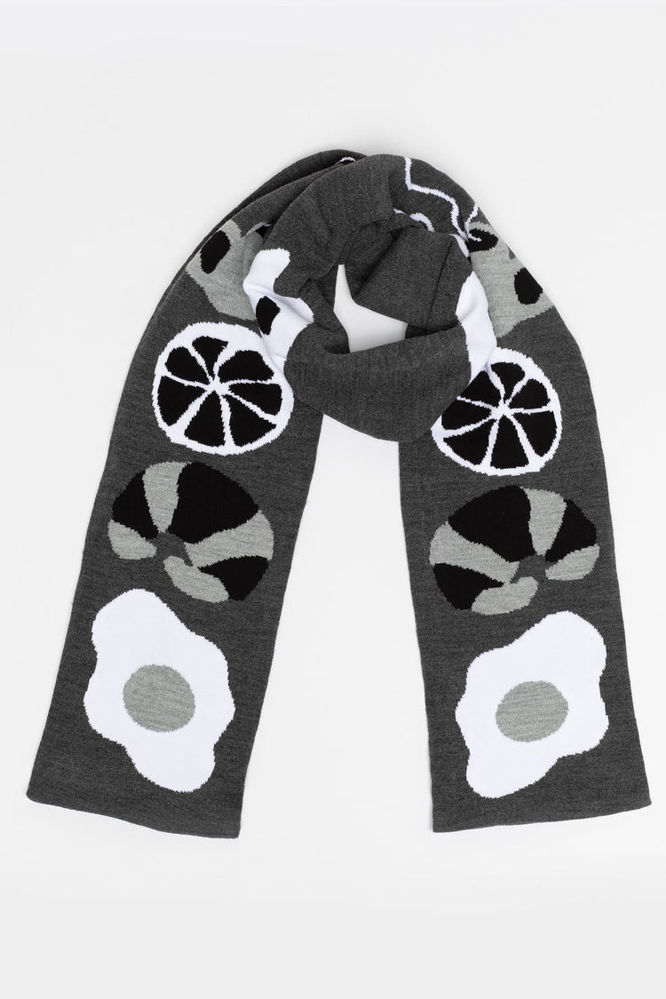 They say breakfast is the most important part of the day and we couldn’t agree more. Shown here are an egg (sunny side up), croissant, grapefruit, coffee, bacon, and toast with a square pad of butter. Artwork by KChung Studio. • 95" Long• Made in Los Angeles, Calif.• Unisex• 100% Acrylic