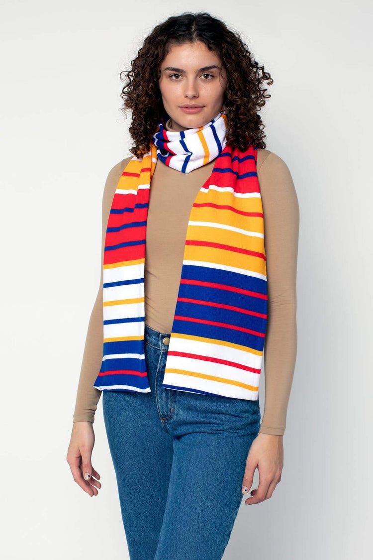 A playful rainbow pattern with contrasting stripes. Artwork by KChung Studio. • 95" Long• Made in Los Angeles, Calif.• Unisex• 100% Acrylic