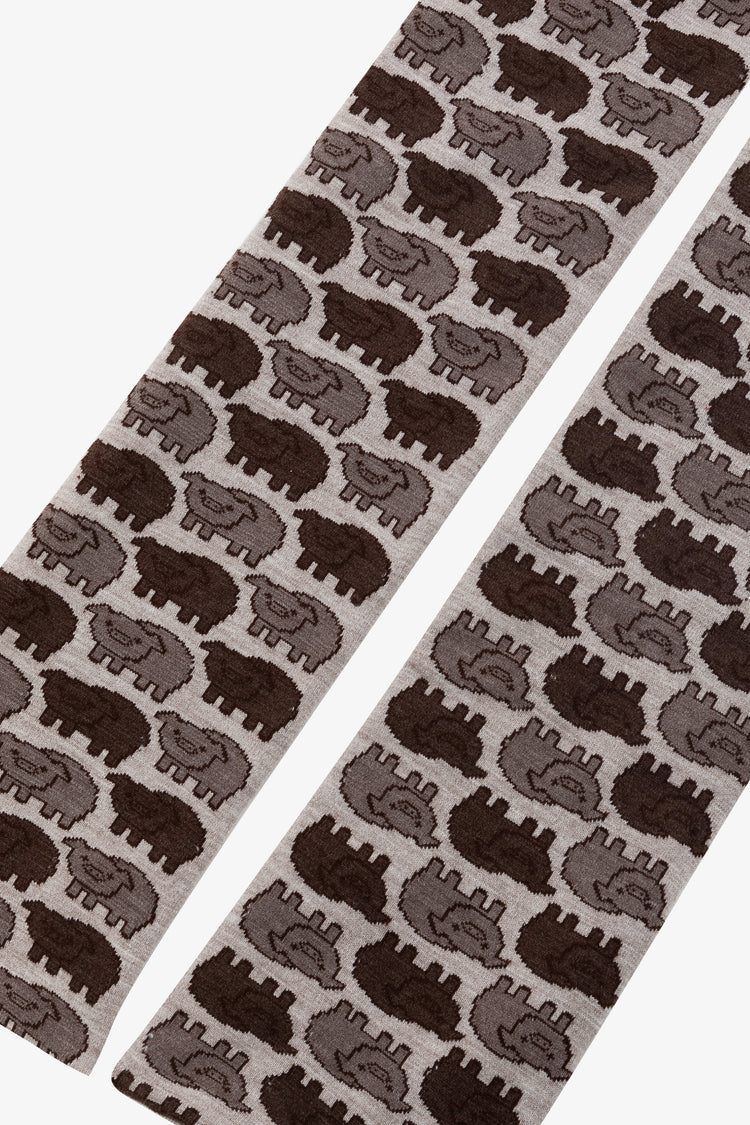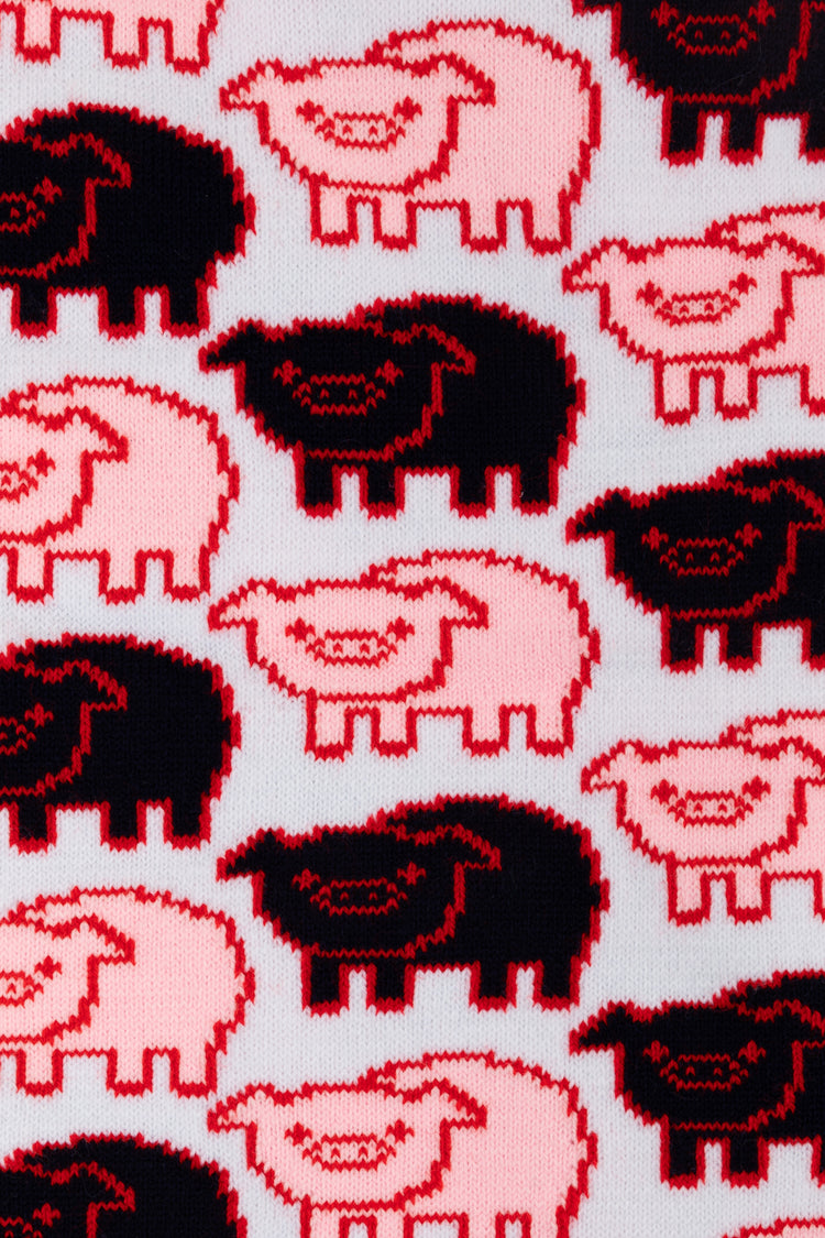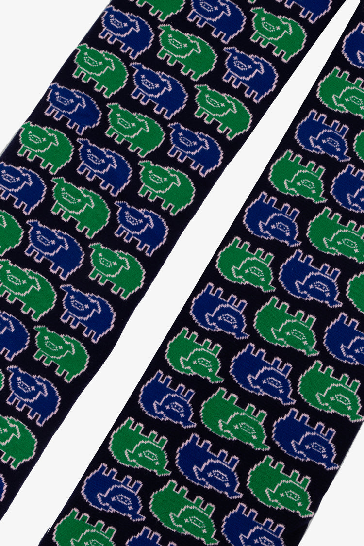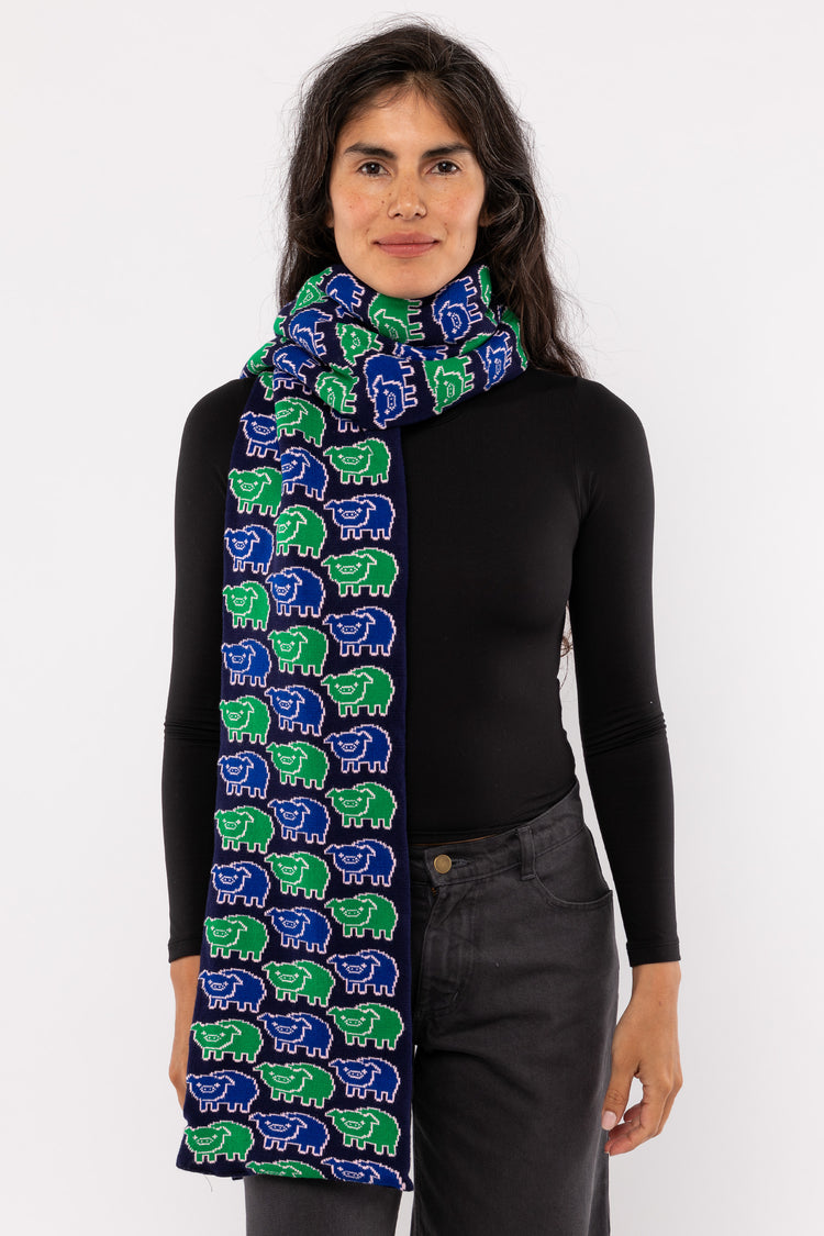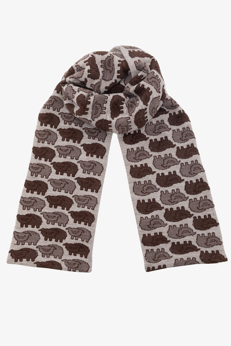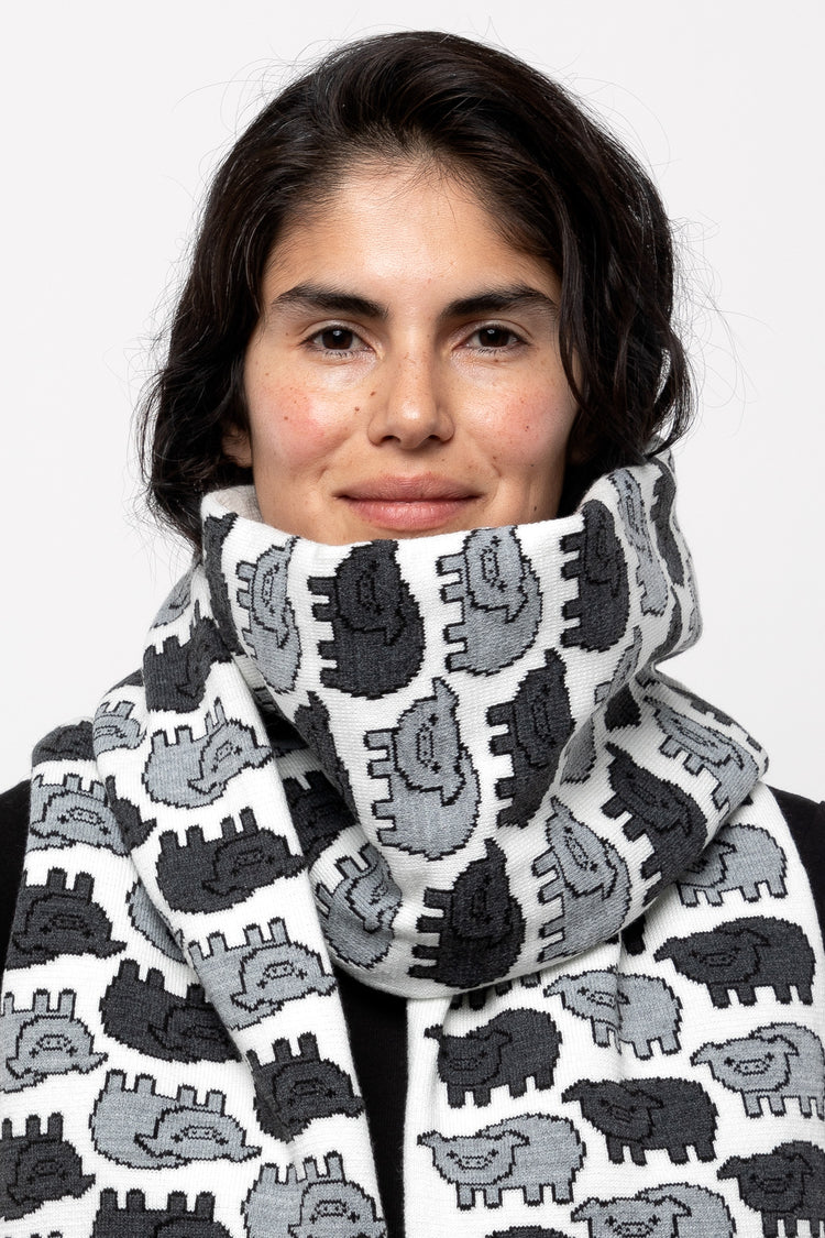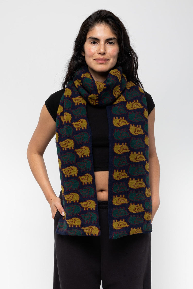 This scarf features a cute repeating piggy pattern. Artwork designed by Kchungstudio • 95" Long• Made in Los Angeles, Calif.• Unisex• 100% Acrylic