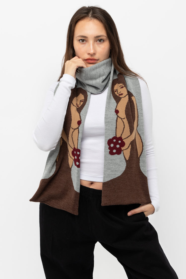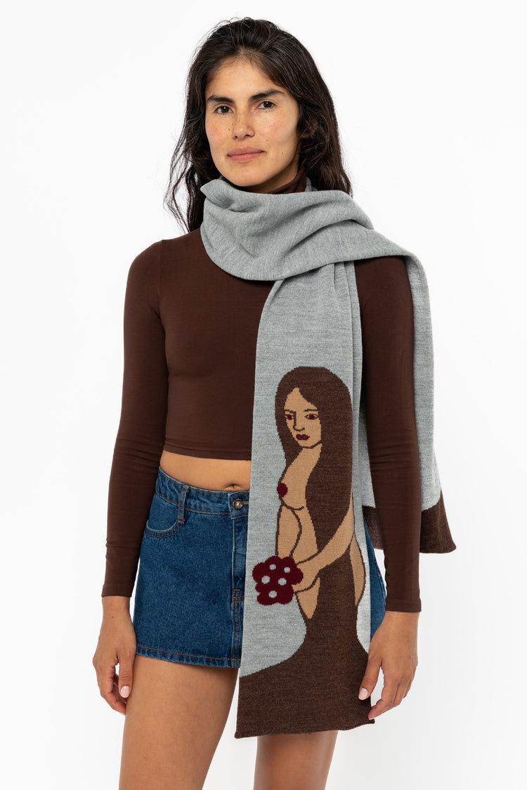 This scarf celebrates the beauty of the female form in nature; this eternal muse has been the inspiration for countless works of art since ancient times. • Approximately 77" Long• Made in Los Angeles, Calif.• Unisex• 100% Acrylic