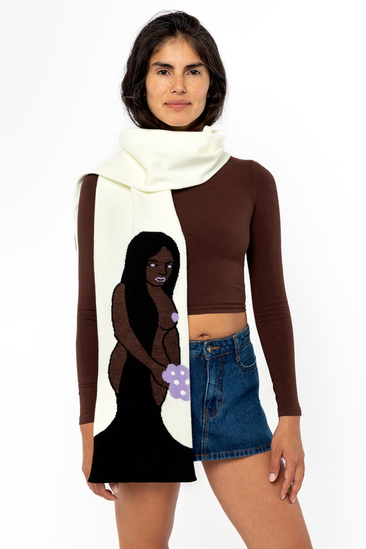 This scarf celebrates the beauty of the female form in nature; this eternal muse has been the inspiration for countless works of art since ancient times. • Approximately 77" Long• Made in Los Angeles, Calif.• Unisex• 100% Acrylic