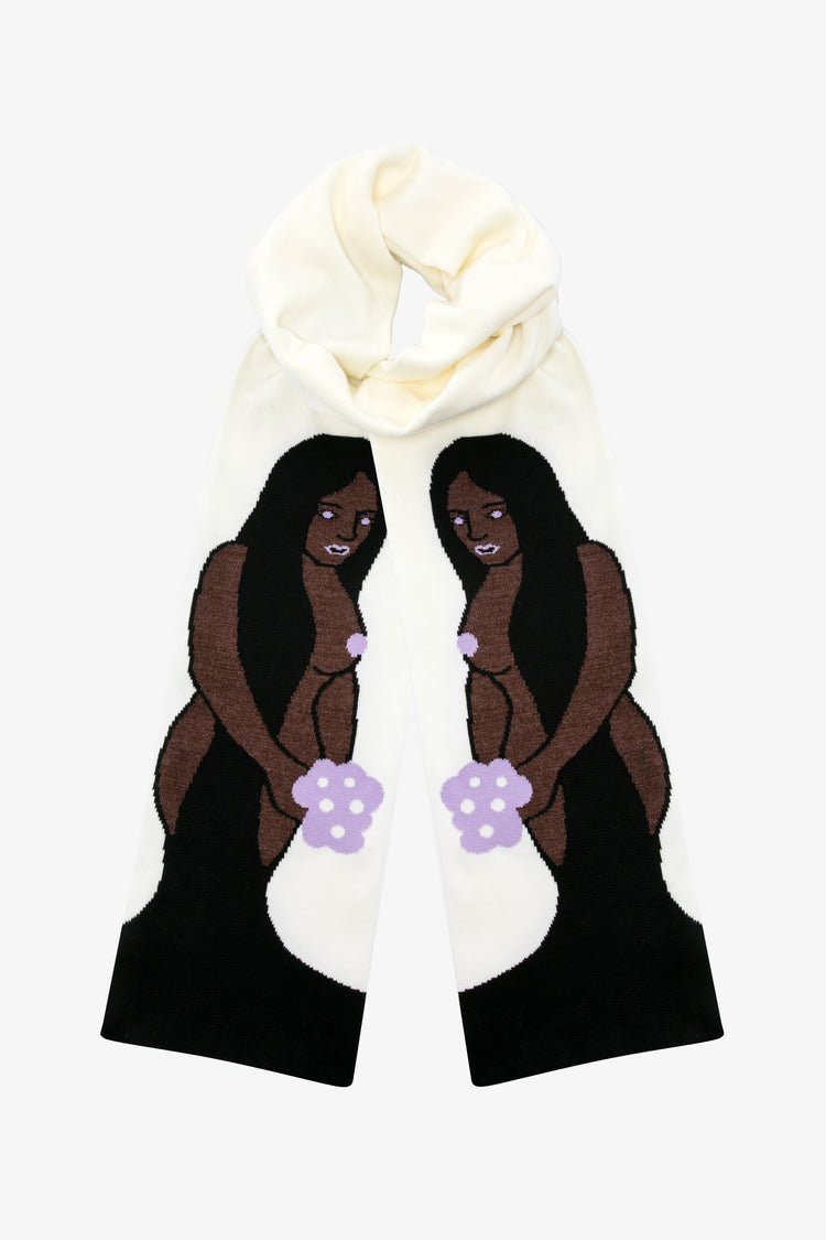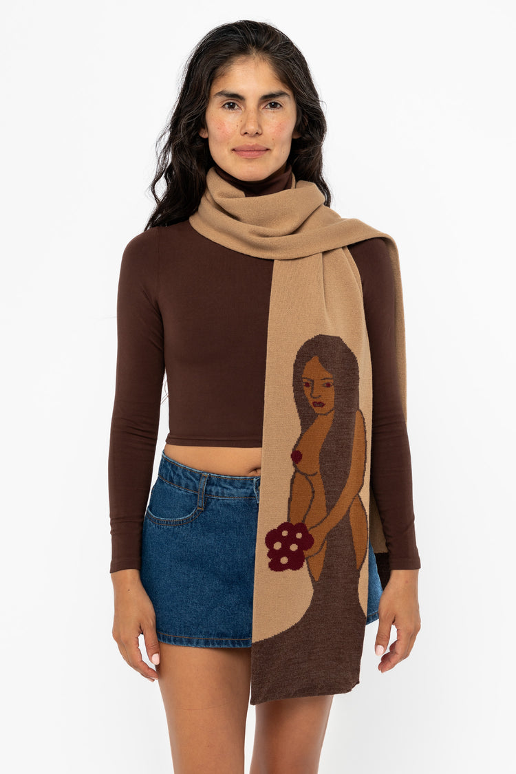 This scarf celebrates the beauty of the female form in nature; this eternal muse has been the inspiration for countless works of art since ancient times. • Approximately 77" Long• Made in Los Angeles, Calif.• Unisex• 100% Acrylic