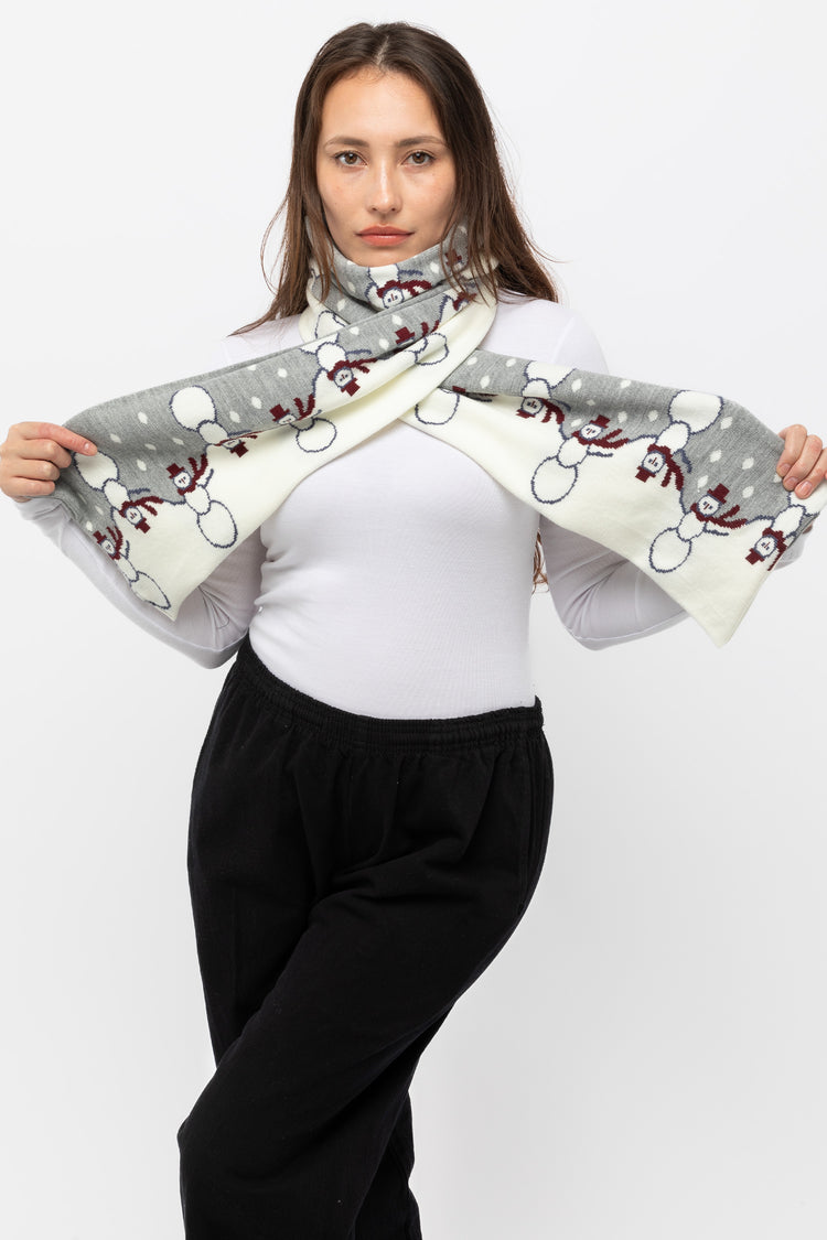Celebrate the festive winter season with the Snowman Scarf. This unisex scarf features a chain of snowmen, each wearing its own billowing scarf. • Approximately 77" Long• Made in Los Angeles, Calif.• Unisex• 100% Acrylic