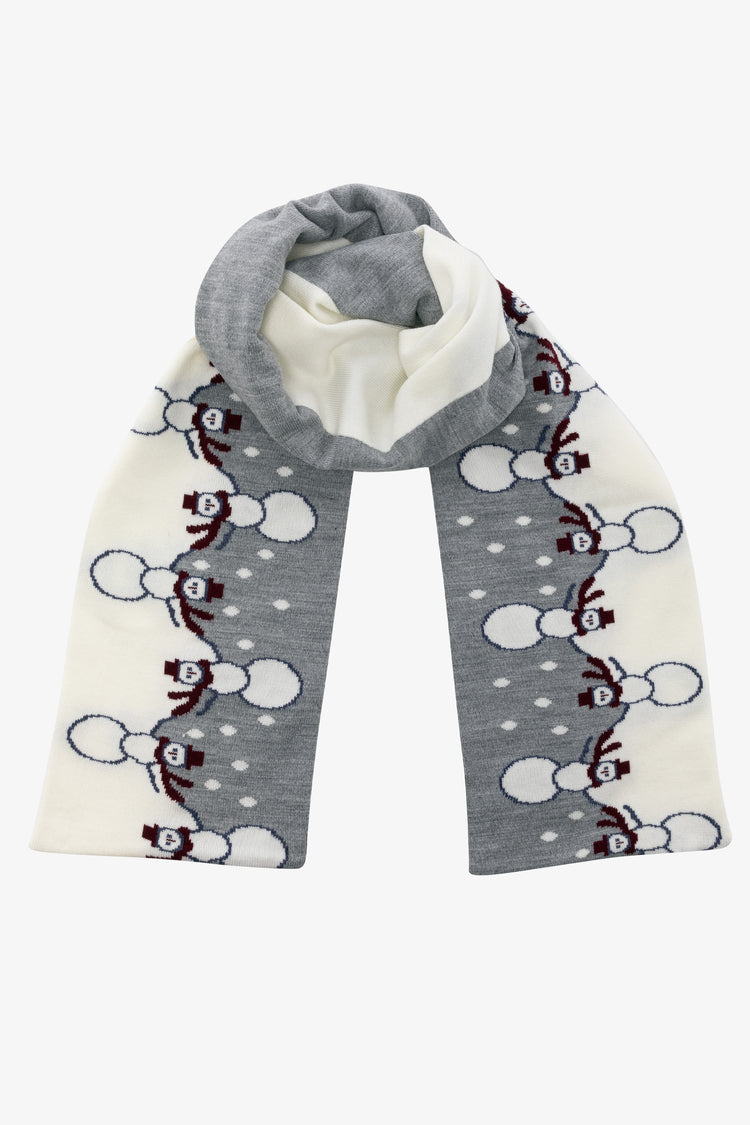 Celebrate the festive winter season with the Snowman Scarf. This unisex scarf features a chain of snowmen, each wearing its own billowing scarf. • Approximately 77" Long• Made in Los Angeles, Calif.• Unisex• 100% Acrylic