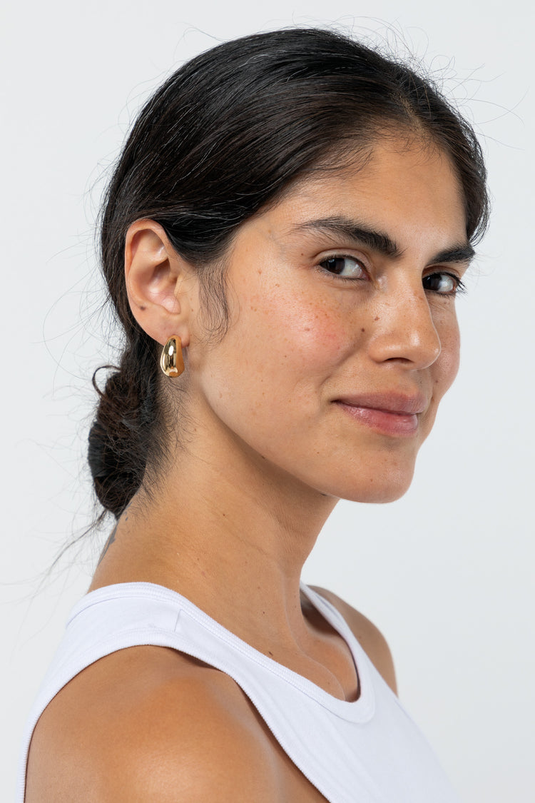 These voluptuous (yet weightless) earrings were inspired by the Modernist sculptures created by Hans Arp. The large reflective surface area will bring the light to your face. • Stainless Steel Post• Gold tone is dipped in 14k gold.• Nickel-Free• Made in Los Angeles, Calif.