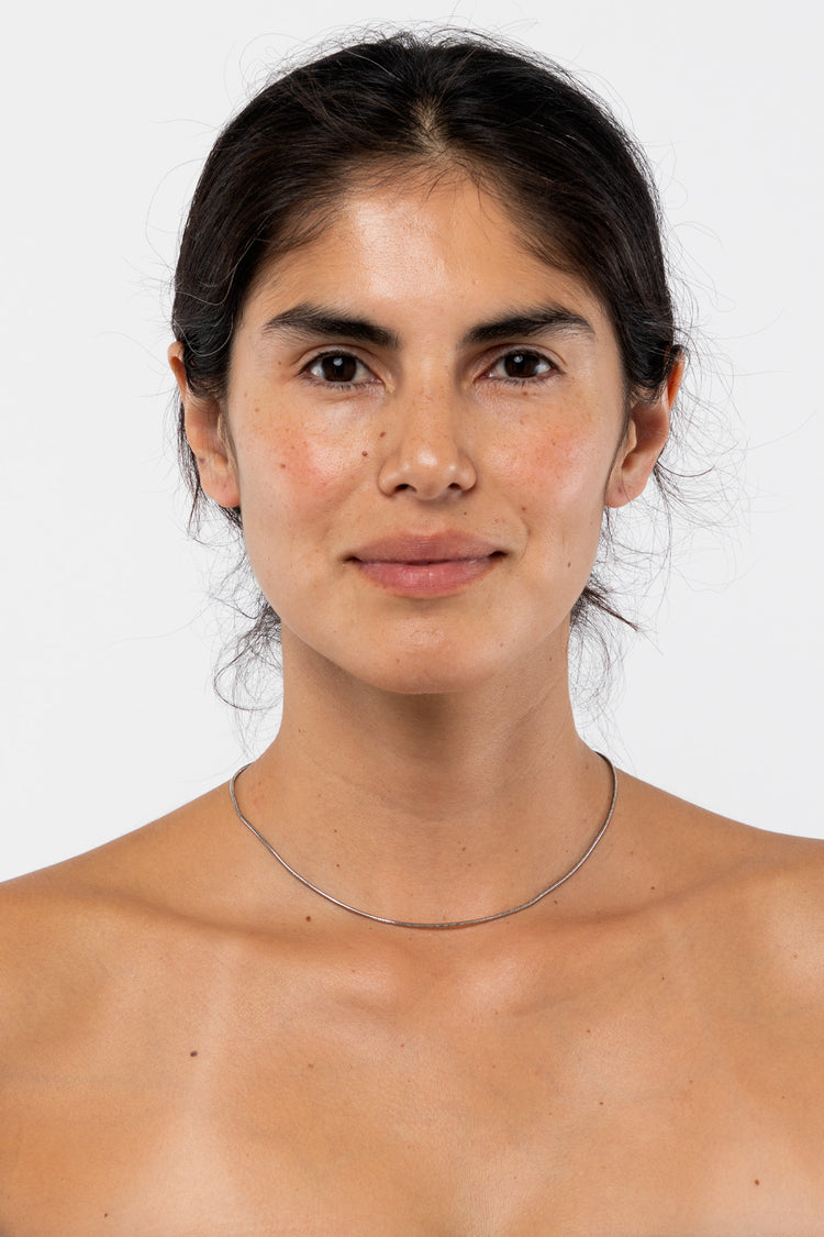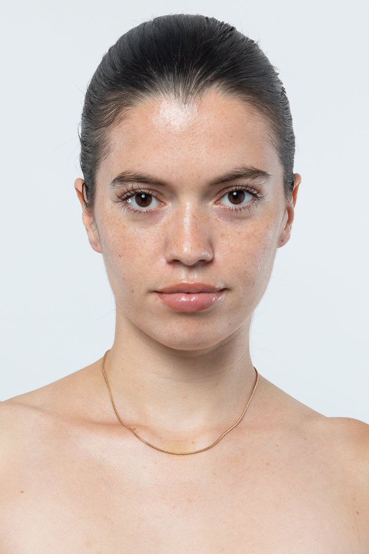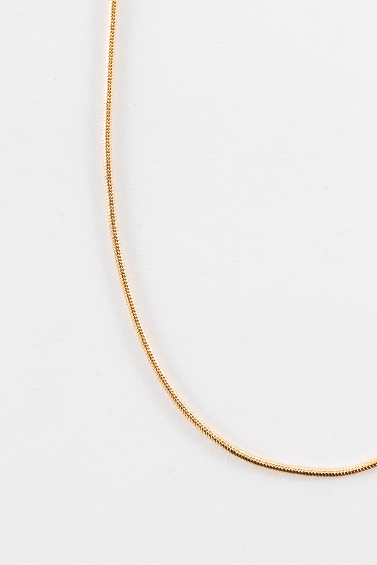 The Snake Chain Choker is a delicate yet sleek chain that can be worn on its own or layered with other neckpieces. • Adjustable 15.5” – 16.5”• Gold tone is dipped in 14k gold. • Made in Los Angeles, Calif.