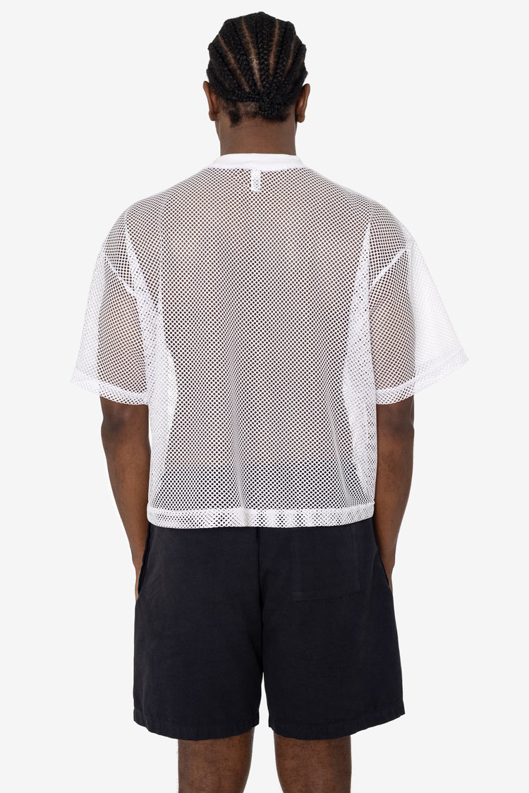 The King Mesh T-Shirt is designed with a relaxed silhouette offering a touch of athletic style. Ideal for hot days, this unisex tee features a wide, cropped fit for easy, breathable wear. Its lightweight fabric makes it a versatile addition to your wardrobe, whether worn alone or layered. Constructed from 100% polyeste