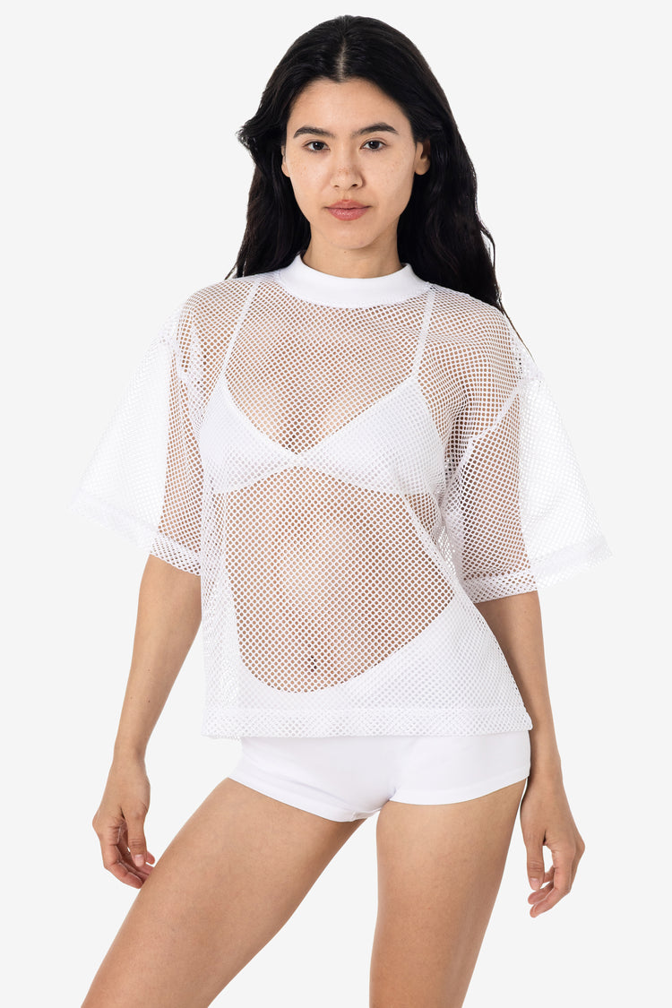 The King Mesh T-Shirt is designed with a relaxed silhouette offering a touch of athletic style. Ideal for hot days, this unisex tee features a wide, cropped fit for easy, breathable wear. Its lightweight fabric makes it a versatile addition to your wardrobe, whether worn alone or layered. Constructed from 100% polyeste