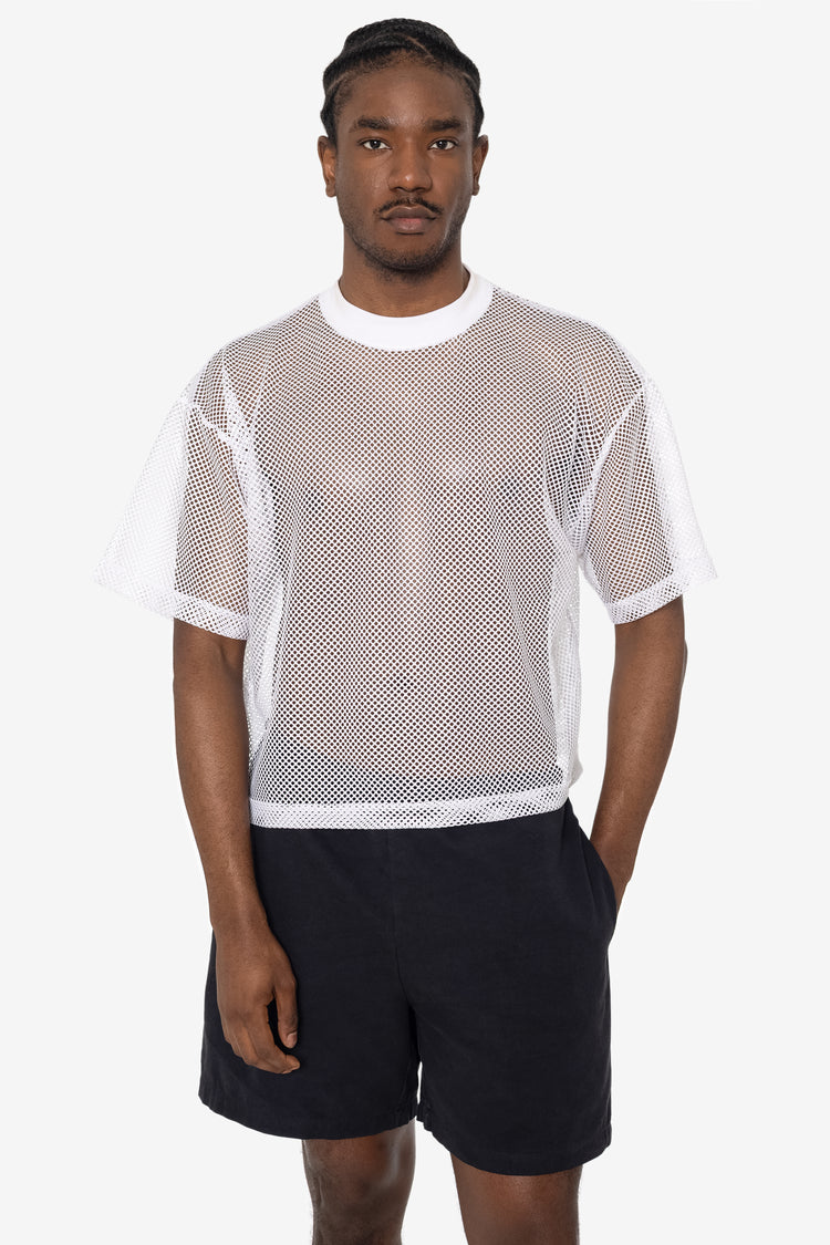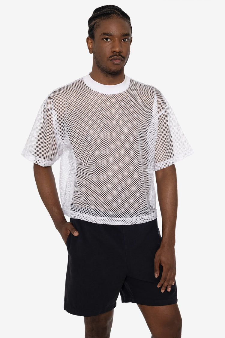 The King Mesh T-Shirt is designed with a relaxed silhouette offering a touch of athletic style. Ideal for hot days, this unisex tee features a wide, cropped fit for easy, breathable wear. Its lightweight fabric makes it a versatile addition to your wardrobe, whether worn alone or layered. Constructed from 100% polyeste
