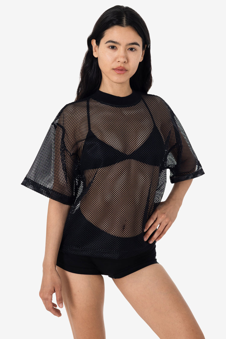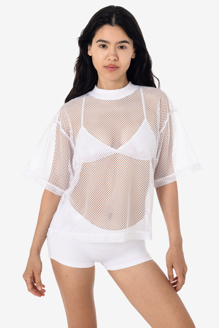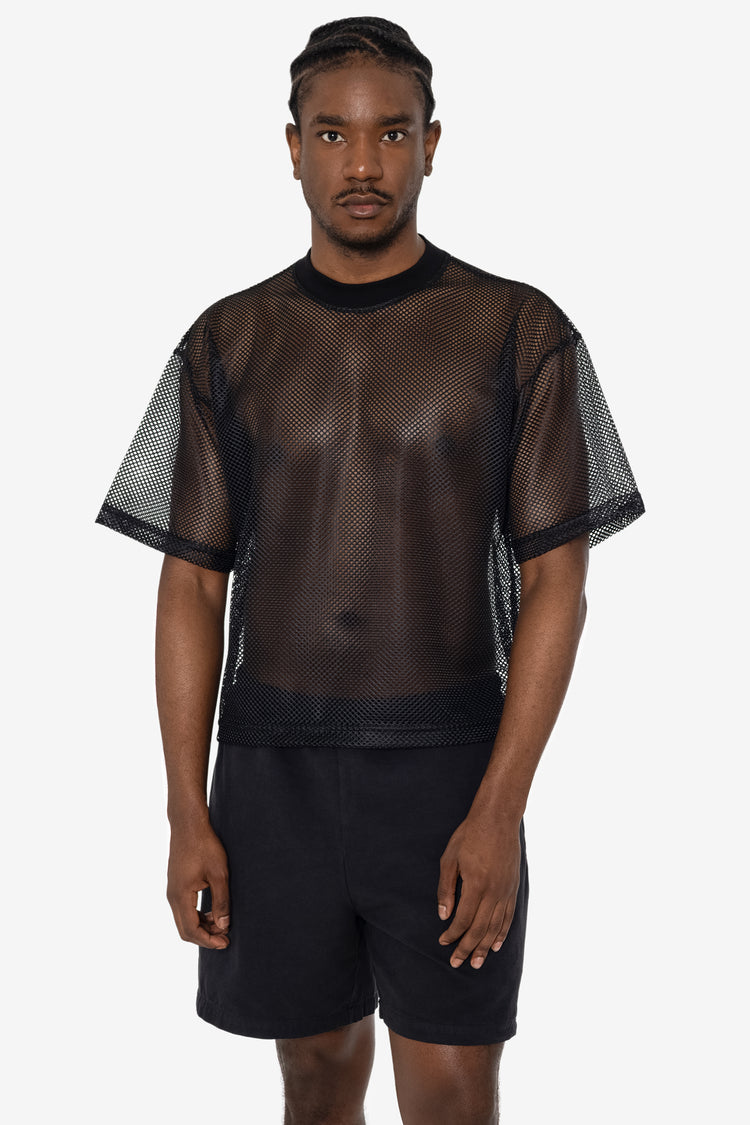 The King Mesh T-Shirt is designed with a relaxed silhouette offering a touch of athletic style. Ideal for hot days, this unisex tee features a wide, cropped fit for easy, breathable wear. Its lightweight fabric makes it a versatile addition to your wardrobe, whether worn alone or layered. Constructed from 100% polyeste