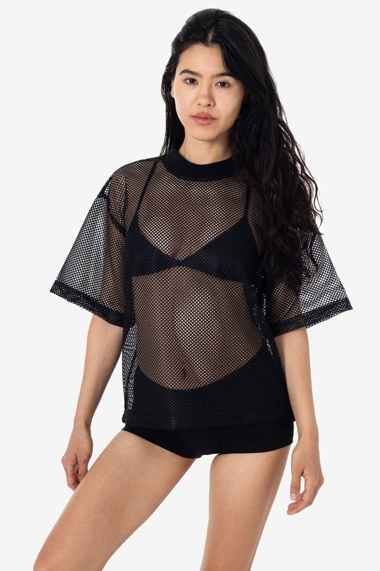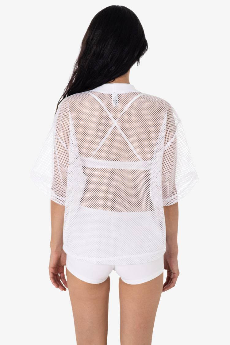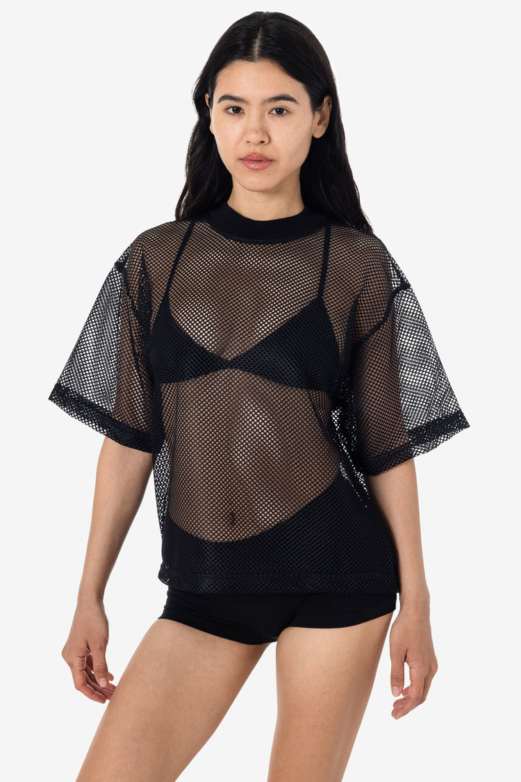 The King Mesh T-Shirt is designed with a relaxed silhouette offering a touch of athletic style. Ideal for hot days, this unisex tee features a wide, cropped fit for easy, breathable wear. Its lightweight fabric makes it a versatile addition to your wardrobe, whether worn alone or layered. Constructed from 100% polyeste