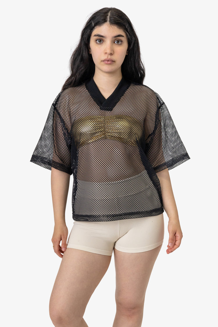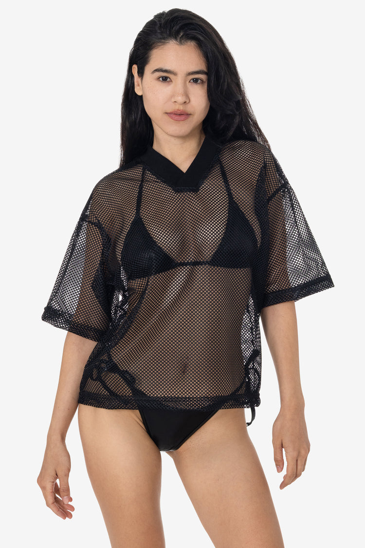 The King Mesh Tee is designed with a relaxed silhouette and a standout V-neck, offering a touch of athletic style. Ideal for hot days, this unisex tee features a wide, cropped fit for easy, breathable wear. Its lightweight fabric makes it a versatile addition to your wardrobe, whether worn alone or layered. Constructed