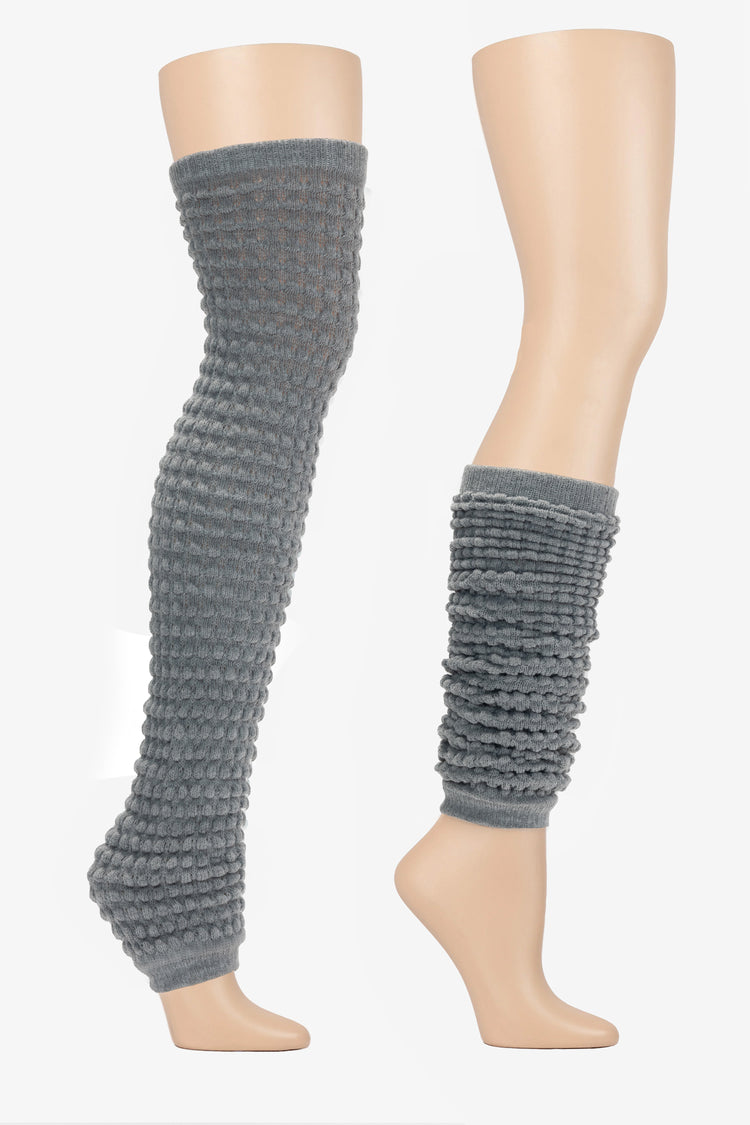 Our Legwarmer features a bubbly knit popcorn texture that creates extra warmth. These leg warmers can be scrunched down or worn high up above the knees. Great for workouts and dance wear or as an extra layer over tights for the winter. SIMILAR STYLE ALERT: If you love our leg warmers, consider the thigh high leg warmer