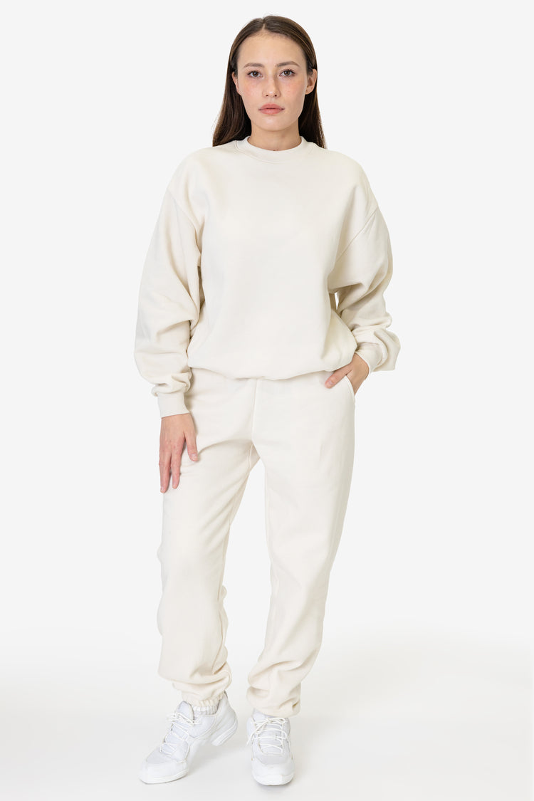 Our new mid-weight, 2-end fleece is made of a 50/50 blend of poly cotton and has a tight knit with minimal stretch. This 10 oz. fleece is an easy, versatile year-round textile. These sweatpants feature the same construction as our bestselling HF-04 Sweatpant with a slightly wider fit in the leg for a breezy, naturally