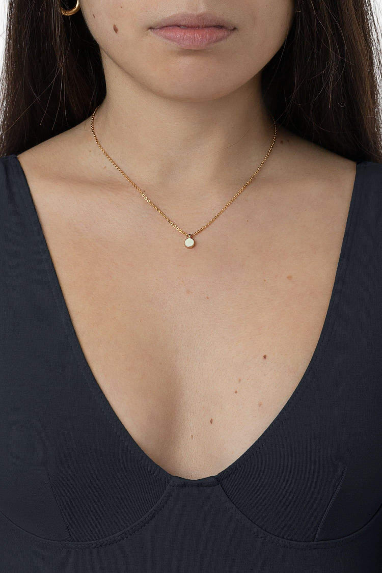 The Women's Enamel Stud Necklace is your everyday statement piece to elevate your look. Made in 14K gold-dipped on a 16" chain. All jewelry is packaged with a unique recycled lamb leather pouch made from sourced materials here at our Los Angeles factory. The model is wearing 5.5mm. • Made in Los Angeles, Calif.