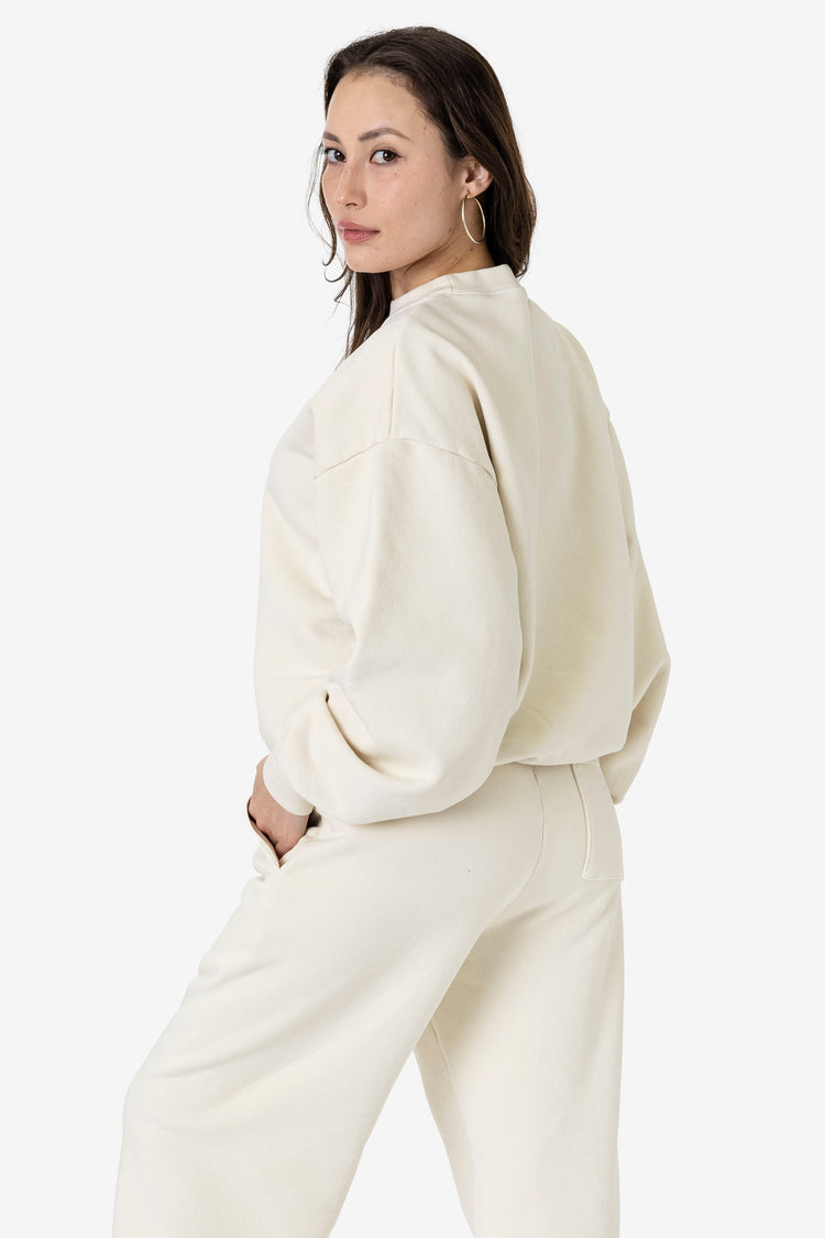 Our 16 oz. fleece is heavier than most leading brands offer and is made from combed cotton face for a softer alternative to our 14 oz. Heavy Fleece. This unisex sweatshirt features a shorter, wide-fit and a thick collar. The voluminous, bouncy silhouette offers a modern look perfect for lounging or wearing on-the-go. M