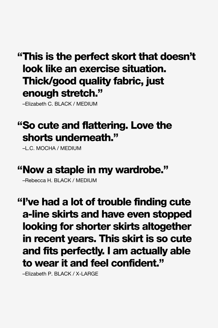 This classic a-line mini skort is made of our smooth Ponte and, yes, there are shorts attached. This high-waisted style features a 1 1/2" elastic waistband and 2 side slits. To ensure extra security and comfort, we've fitted these with flattering shorts underneath so you can wear this timeless style for all your favori