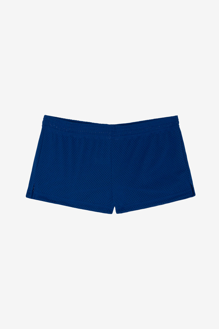 These mini athletic shorts are made of a durable polyester mesh with a subtle translucent look. Features a low rise fit and elastic waist that can be folded down to suit your desired length. Elastic shrinks approximately 1" after washing. Looking for a longer length? Shop our Pro Mesh Long Shorts. Made in Los Angeles,