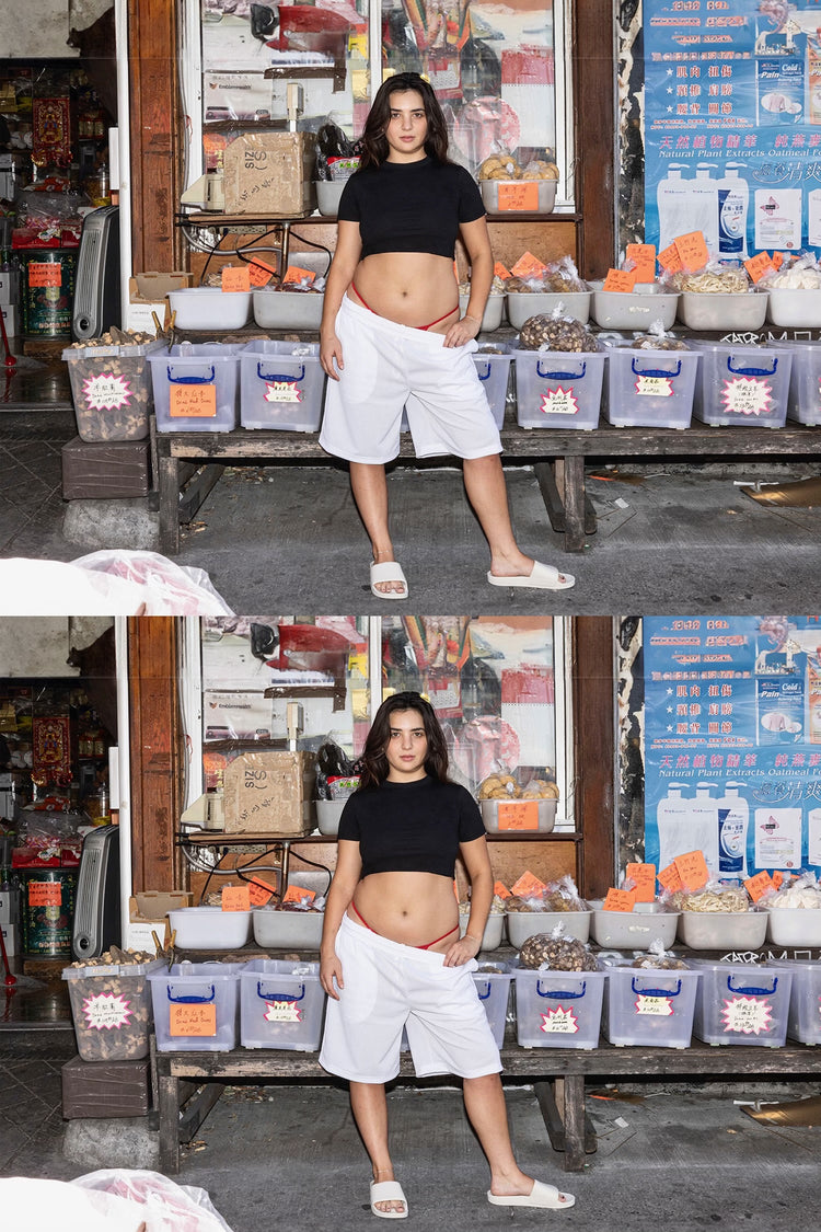 These long basketball-style shorts are made of a durable polyester mesh that lets just enough light through to give a sexy edge to this masculine garment. These shorts are very oversized, and we recommend women wear them low waisted with your favorite crop top. Features 2 side pockets and an adjustable drawcord waist.