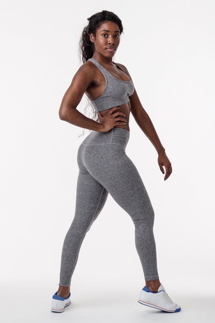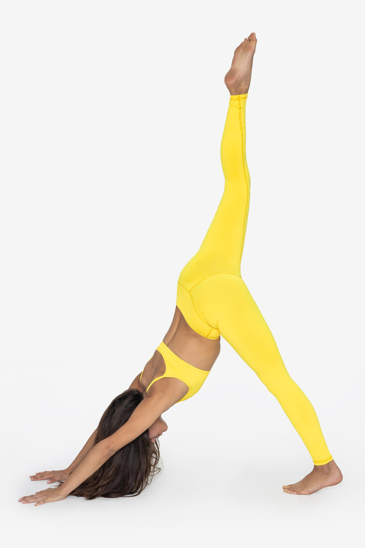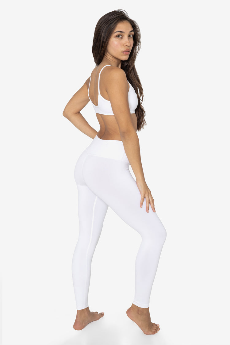 Our performance pant fits like a legging with all the features you need for active use. The high banded waist is flattering and designed not to dig into your skin. These bottoms also feature a hidden pocket to store whatever little things you might need on the go. Made in Los Angeles, Calif. Our experienced sewers earn