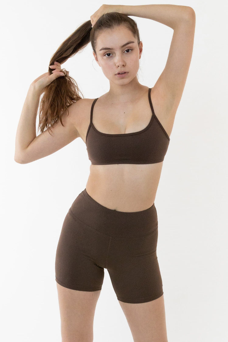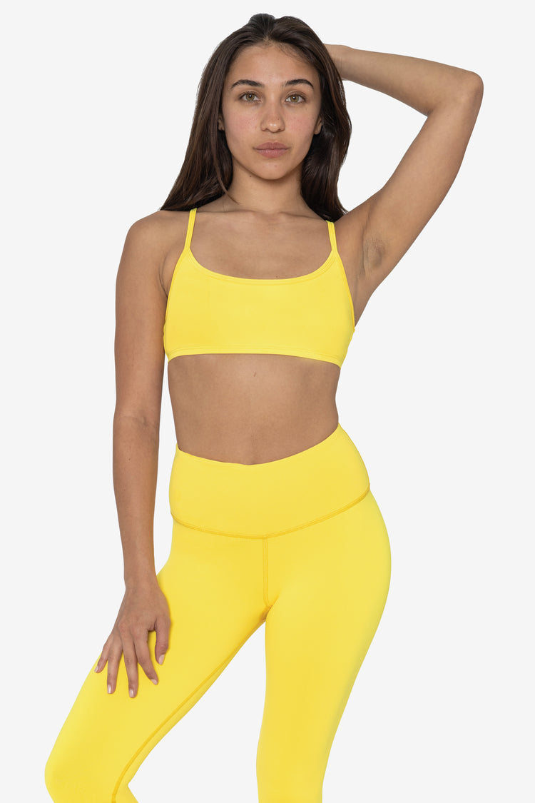 The Performance Spaghetti Sports Bra is made of sweat-resistant nylon/spandex fabric that supports and flatters your figure for active use. The spaghetti straps and low back give this bra a minimal and feminine look. This is a sports bra you can wear every day that will last for years. Made in Los Angeles, Calif. Our e