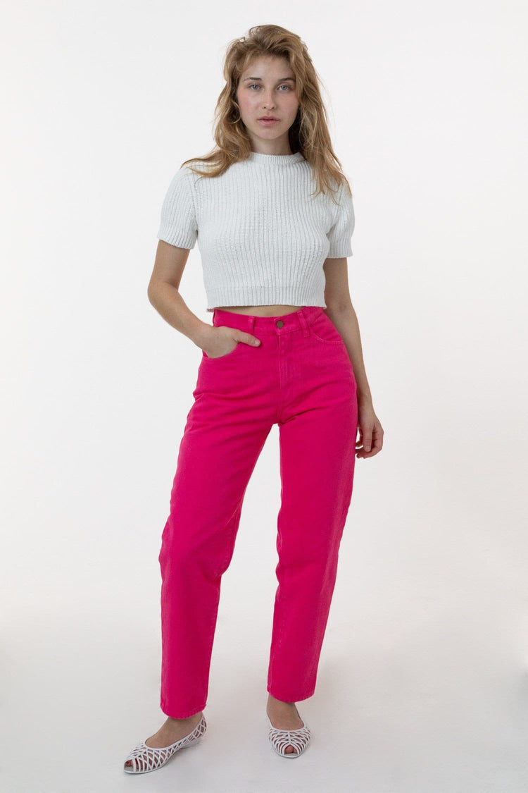 We've taken our best selling Relaxed Fit 5 Pocket Jean and garment dyed them to match our best selling t-shirt colors. Size up on the waist to get a mid-rise slouchier fit, or size down to have them fit high-waisted and accentuate your hips. comes in multiple lengths to avoid unnecessary alterations. Made from rigid 13