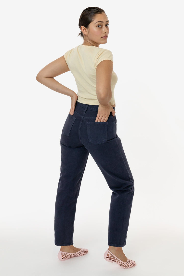 We've taken our best selling Relaxed Fit 5 Pocket Jean and garment dyed them to match our best selling t-shirt colors. Size up on the waist to get a mid-rise slouchier fit, or size down to have them fit high-waisted and accentuate your hips. comes in multiple lengths to avoid unnecessary alterations. Made from rigid 13