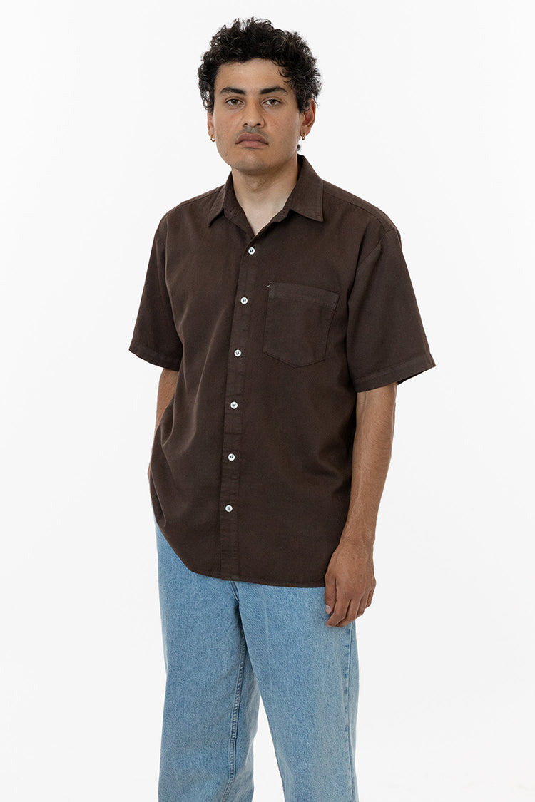 This relaxed button up is ideal for everyday, casual wear and is made of our lightweight 4 oz. cotton twill. This short sleeve style can be styled in endless ways and features a single front pocket and pearlescent buttons. We have garment dyed this 100% cotton style for a naturally worn in feeling, shrink-free finish a