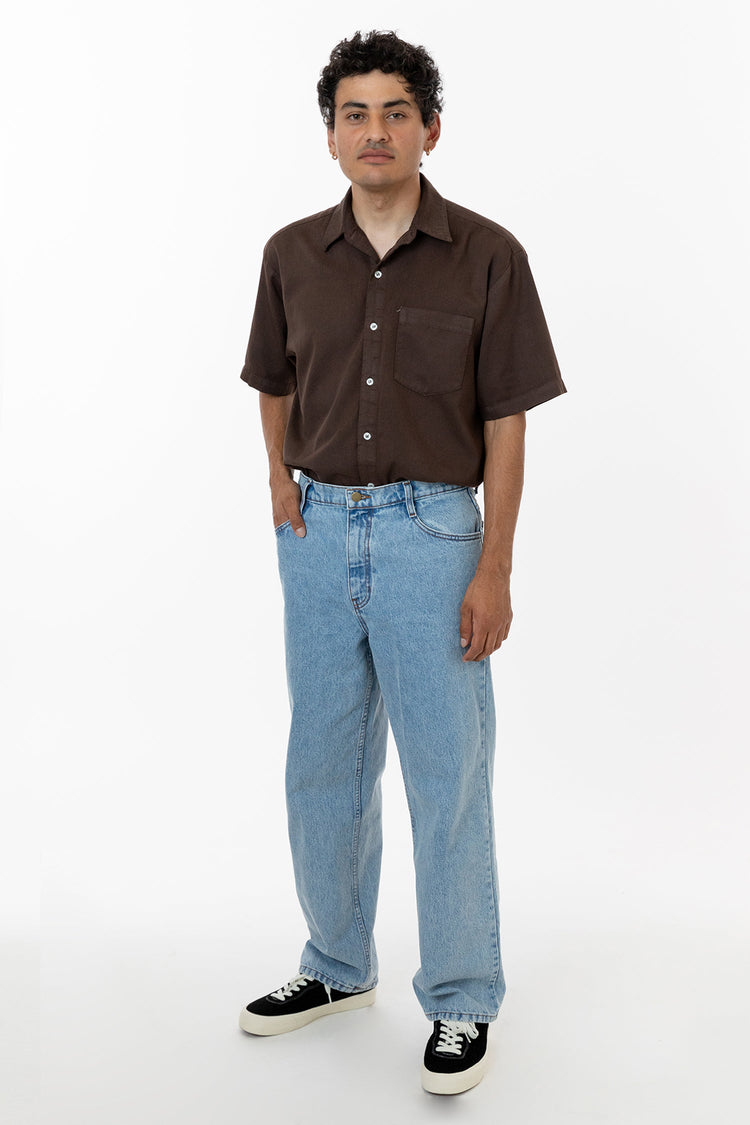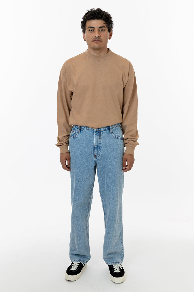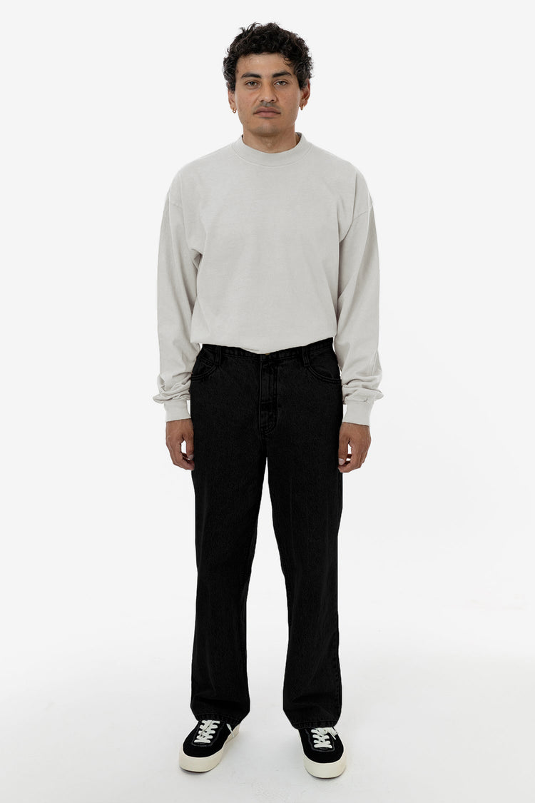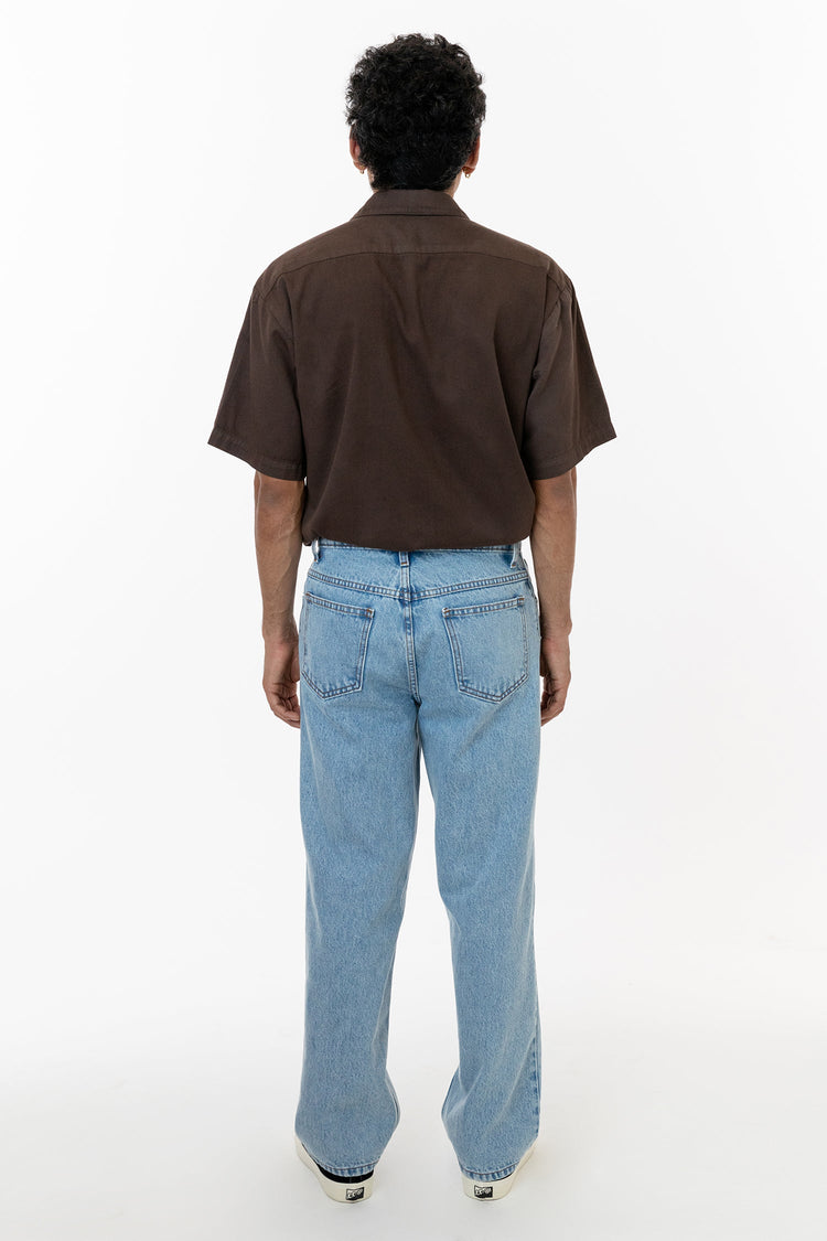 The Men's Loose Fit 5 Pocket Jean was designed with a timeless, vintage-inspired fit. These jeans are relaxed throughout providing ease and comfort for any activities. We've made them in 2 different lengths to avoid unnecessary alterations. Made in Los Angeles, Calif. Our experienced sewers earn up to $25 an hour and n
