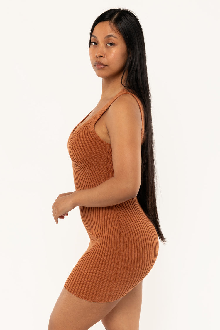 This form fitting ribbed dress was knit with three times more elastic than the RFK50 Ultra Heavy Knit Cropped Top to ensure that it always snaps back and hugs every curve. The front and back feature V neck lines, with the back V plunging slightly deeper.Designed to make sure all eyes in the room are on you. Pair it wit