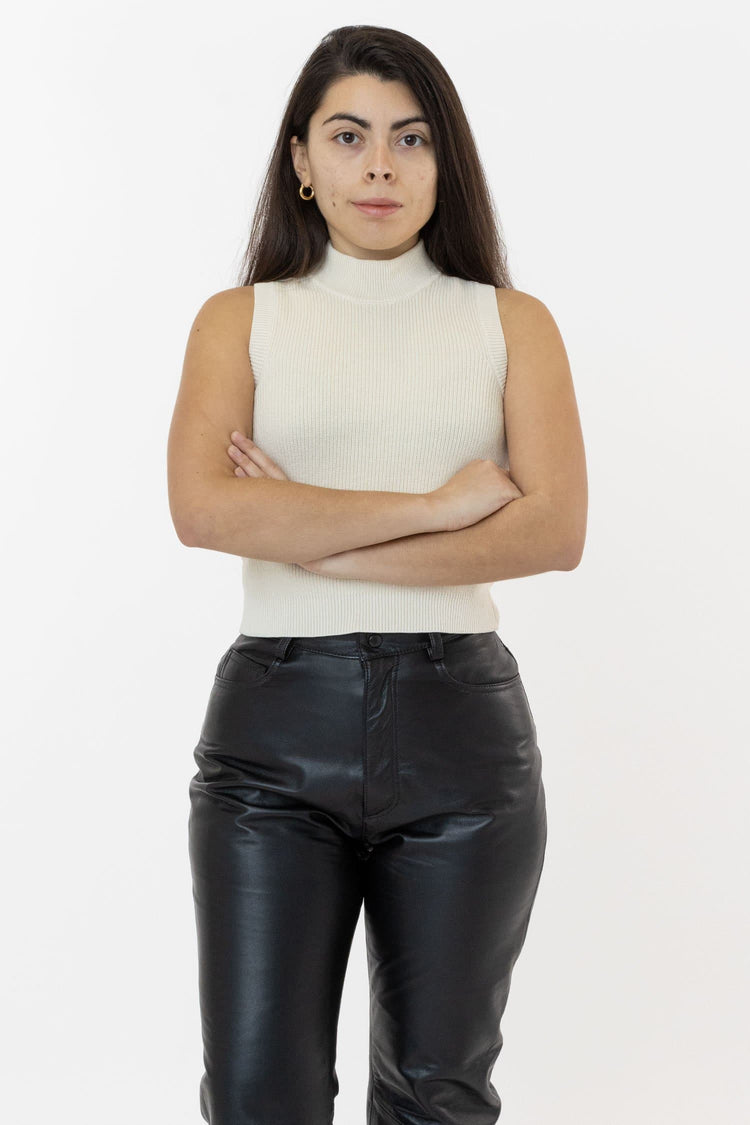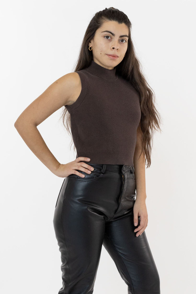 This Cotton Knit Sleeveless Mock Neck is garment dyed and knit from 100% cotton right here in Los Angeles! This sleeveless sweater is breathable, has a slim, cropped fit and a mock neck that fits snug on your neck. Layer during winter for extra warm or wear alone during warmer days. This item is a garment dye product.
