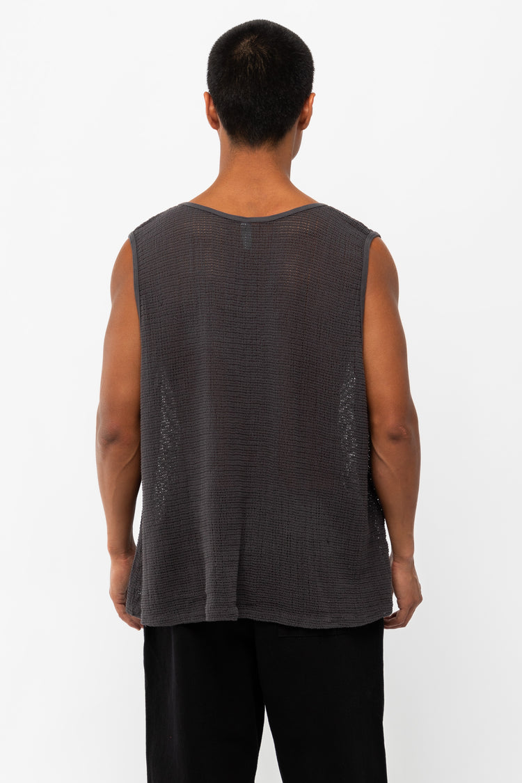The Unisex Cotton Fishnet Tank Top has a slightly oversized fit, making it an easy option for the hottest summer days. Made in Los Angeles, Calif. Our experienced sewers earn up to $25 an hour and no less than $17.87; additionally workers have healthcare benefits for less than $15 per week, a 401k plan, paid sick days,
