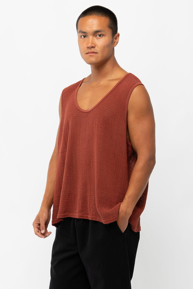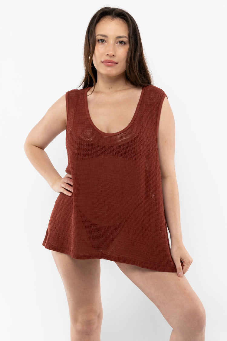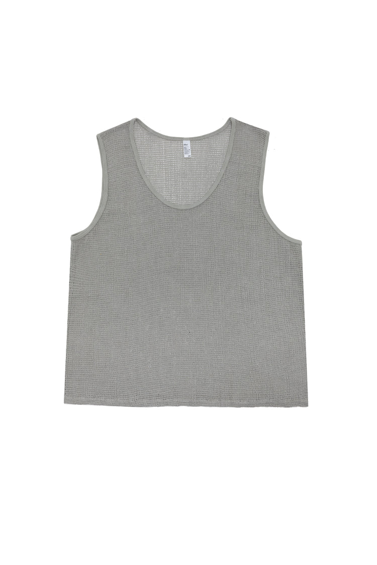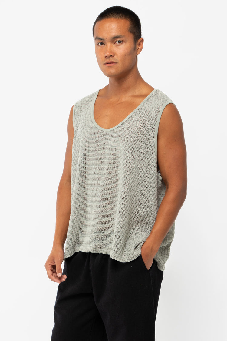 The Unisex Cotton Fishnet Tank Top has a slightly oversized fit, making it an easy option for the hottest summer days. Made in Los Angeles, Calif. Our experienced sewers earn up to $25 an hour and no less than $17.87; additionally workers have healthcare benefits for less than $15 per week, a 401k plan, paid sick days,