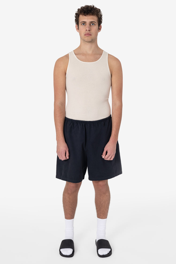 Our micro canvas mid-length shorts have a roomy, wide leg and a unisex fit. These shorts have 2 side pockets, one back pocket and an adjustable drawcord inside the elastic waistband. Runs true to size. Women may wish to size down. Whether you're lounging or ready to hit the gym, these shorts are built for any occasion.